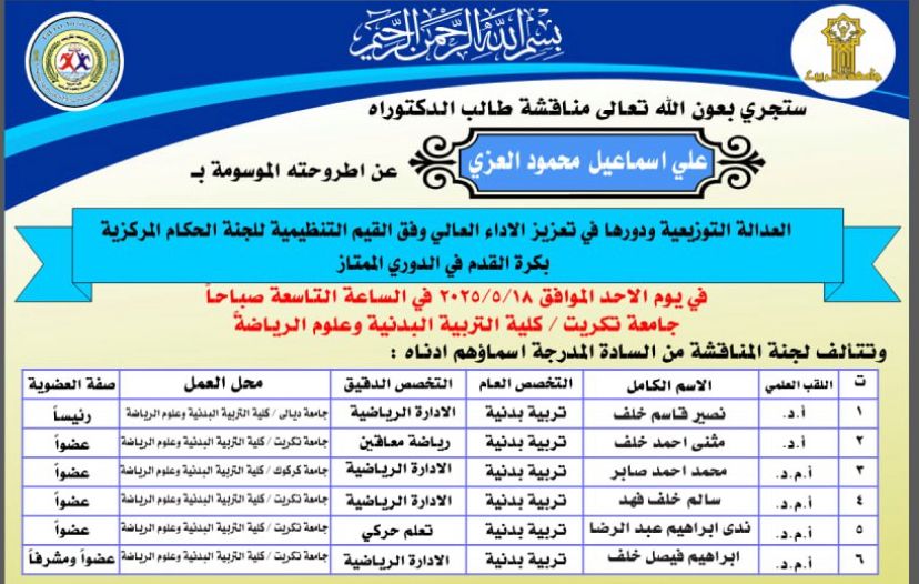جامعة تكريت / كلية التربية البدنية وعلوم الرياضة