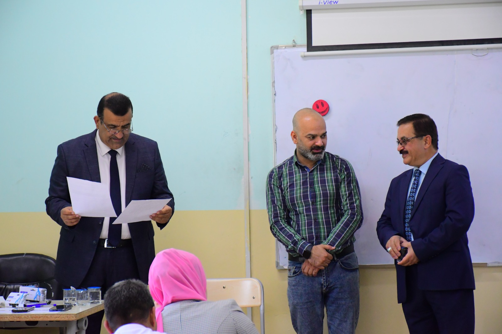 أستقبل السيد عميد كلية التربية البدنية وعلوم الرياضة في جامعة تكريت الأستاذ المساعد الدكتور عبدالله محمد طياوي صباح يوم الاثنين الموافق ٢٠٢٤/٥/٢٧ اللجنة المركزية المسؤولة عن متابعة سير امتحانات الدور الأول لطلبة الدراسات الاولية والدراسات العليا في جامعة تكريت للعام الدراسي 2023-2024 ، حيث اجرت اللجنة خلال زيارتها جولة تفقدية للقاعات الامتحانية للاطلاع على آلية سير الامتحانات والإجراءات المتبعة بكل تفاصيلها ومدى مطابقتها لمعايير وتعليمات وزارة التعليم العالي والبحث العلمي ورئاسة جامعة تكريت ، والتقت اللجنة خلال زيارتها التفقدية بعدد من التدريسيين المشرفين على سير الامتحانات واستمعت إلى ملاحظاتهم ومقترحاتهم.