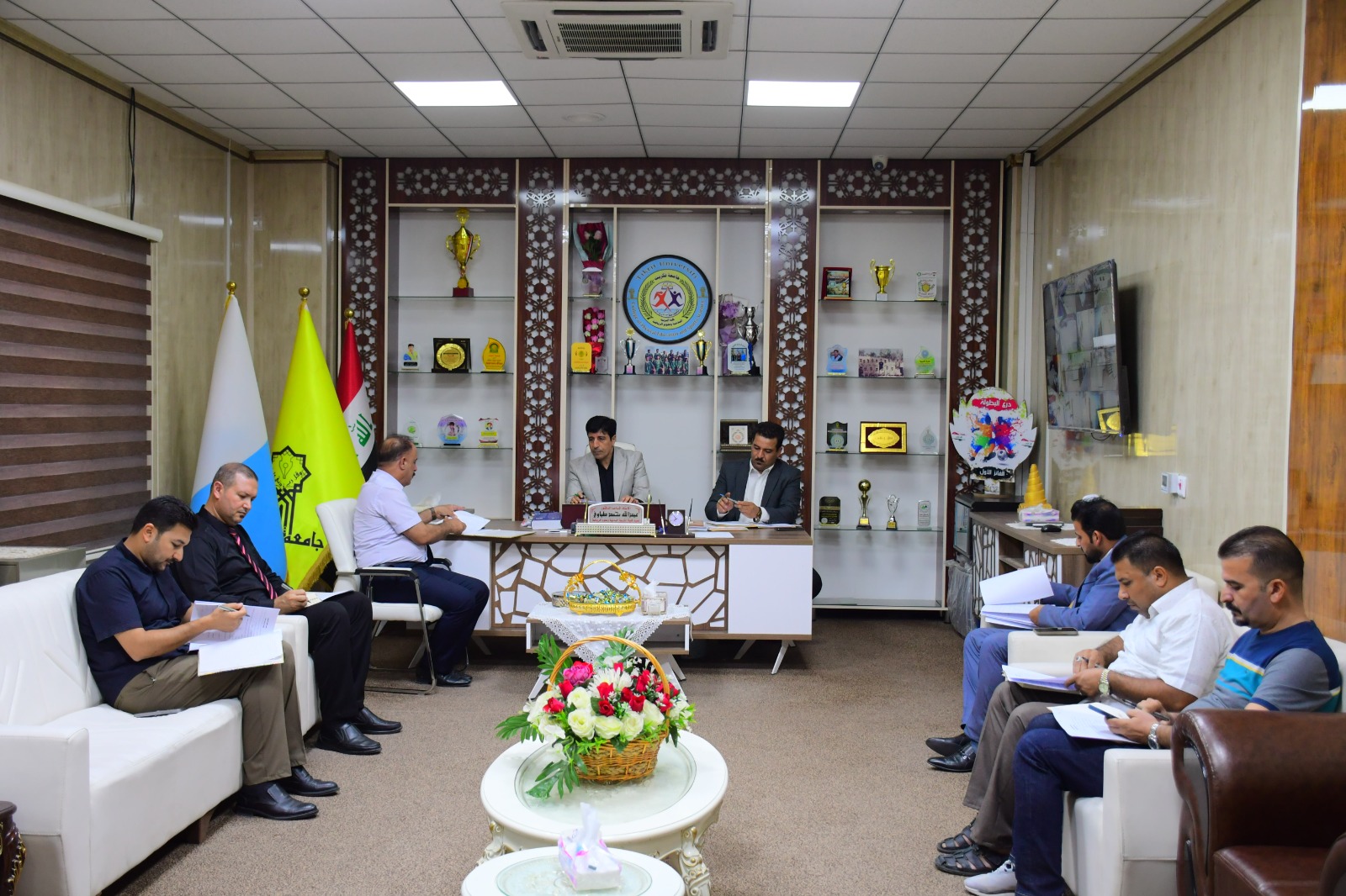 عقد مجلس كلية التربية البدنية وعلوم الرياضة - جامعة تكريت جلسته الأولى للعام الدراسي 2024 - 2025 يوم الاثنين الموافق 2 / 9 / 2024 ، برئاسة السيد عميد الكلية الأستاذ المساعد الدكتور عبدالله محمد طياوي المحترم وبحضور اعضاء المجلس كافة ، حيث أستهل السيد عميد الكلية اللقاء بكلمة ترحيبية لأعضاء المجلس كافة بمناسبة بدء العام الدراسي الجديد ومن ثم قدم بعض التوجيهات والارشادات وتبليغ توجيهات السيد رئيس الجامعة المحترم بهذا الصدد ، وقد ناقش المجلس الفقرات التالية :-