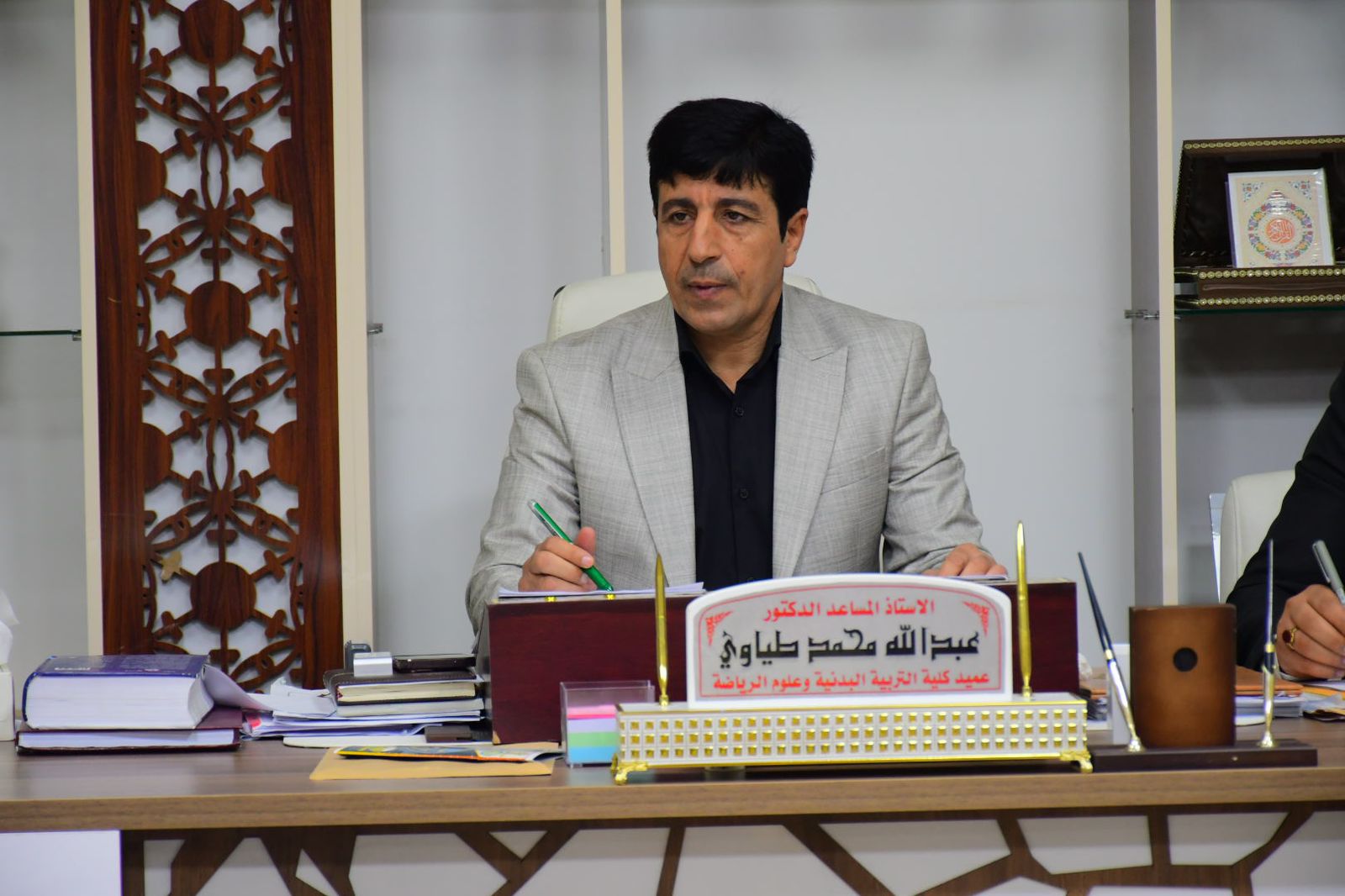 عقد مجلس كلية التربية البدنية وعلوم الرياضة - جامعة تكريت جلسته الحادية والعشرون للعام الدراسي 2023 - 2024 يوم الثلاثاء الموافق 6 / 8 / 2024 ، برئاسة عميد الكلية الأستاذ المساعد الدكتور عبدالله محمد طياوي المحترم وبحضور اعضاء المجلس كافة ، وقد استضاف المجلس الأستاذ الدكتور سرمد احمد موسى رئيس لجنة الترقيات في الكلية والأستاذ المساعد الدكتور امجد حامد بدر مسؤول الشعبة العلمية في الكلية وقد ناقش المجلس الفقرات التالية :-