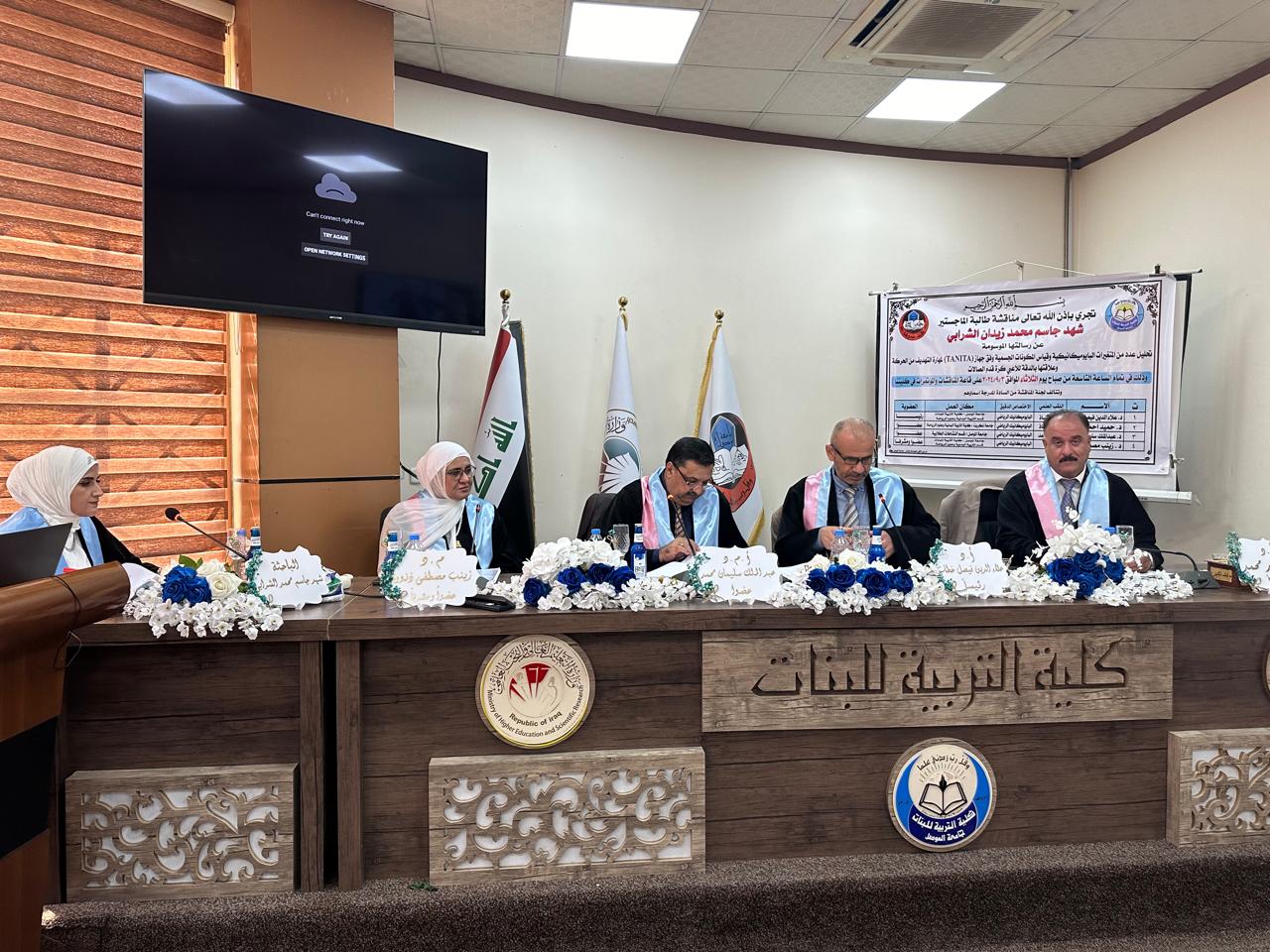 شاركَ السيد معاون العميد للشؤون العلمية الأستاذ الدكتور حميد احمد محمد في عضوية لجنة مناقشة رسالة طالبة الماجستير ( شهد جاسم محمد ) الموسومة ( تحليل عدد من المتغيرات البايوميكانيكية وقياس المكونات الجسمية وفق جهاز (TANITA) لمهارة التهديف من الحركة وعلاقتها بالدقة للاعبي كرة قدم الصالات ) وذلك في تمام الساعة التاسعة من صباح يوم الثلاثاء الموافق 3 / 9 / 2024 وعلى قاعة مناقشات كلية التربية للبنات - قسم التربية البدنية وعلوم الرياضة في جامعة الموصل ، حيث تكونت لجنة المناقشة من اسماء السادة ادناه :-