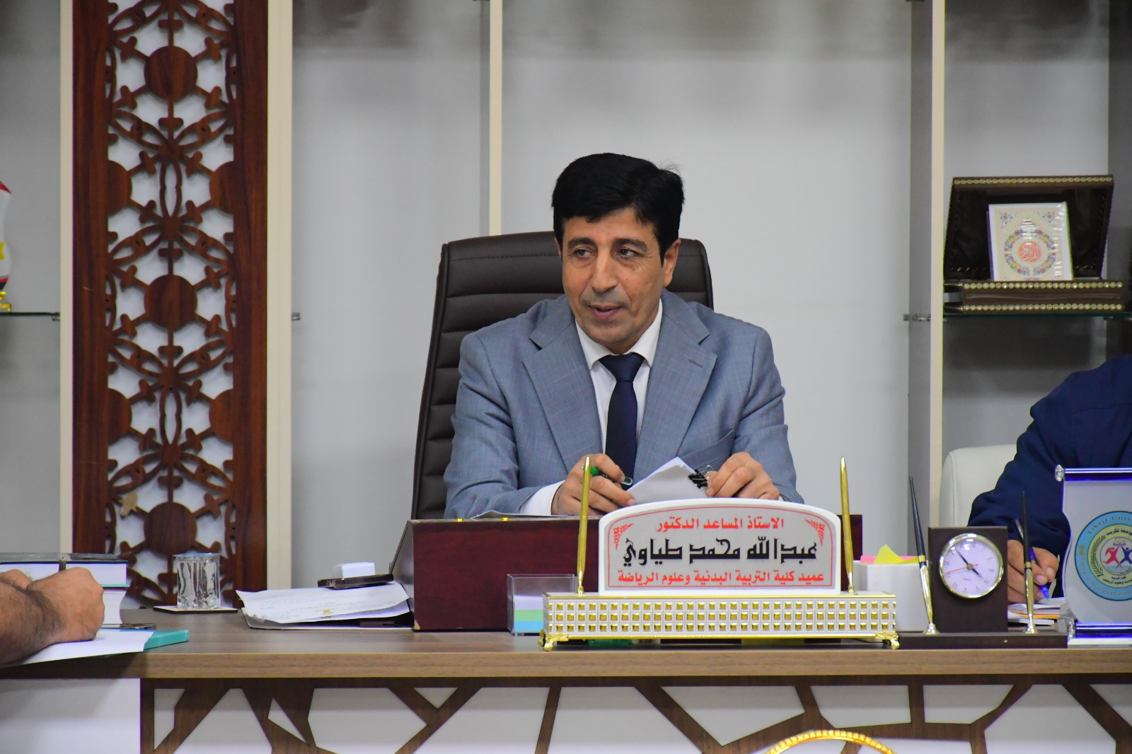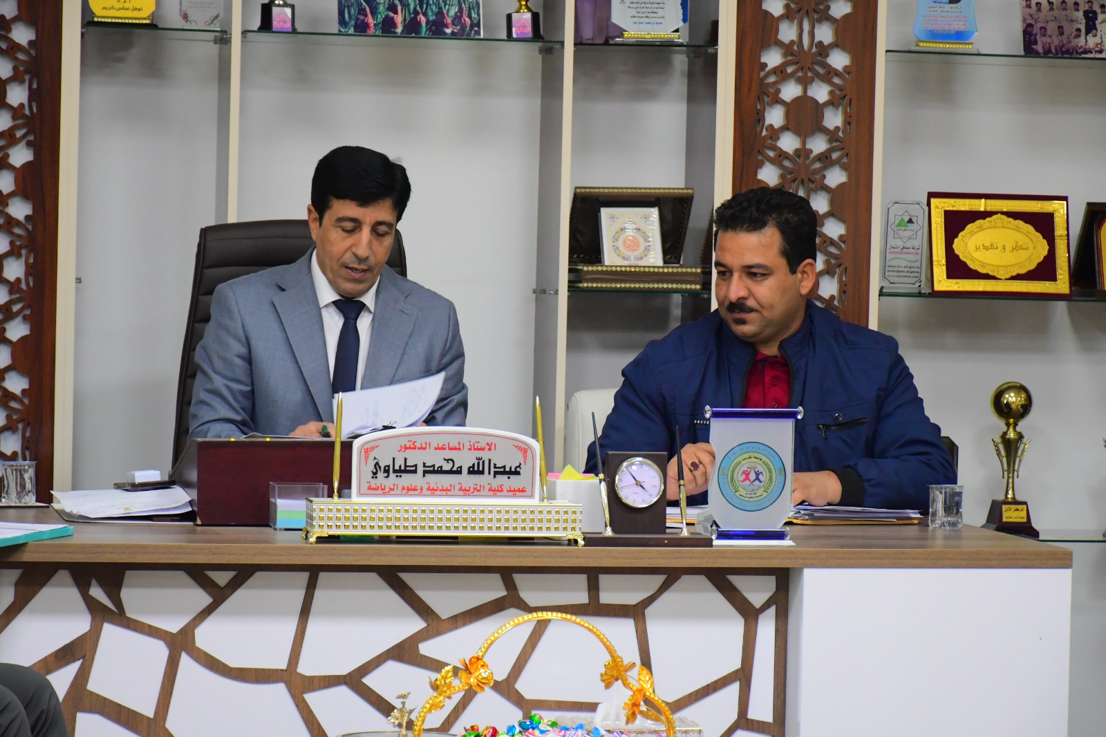 عقد مجلس كلية التربية البدنية وعلوم الرياضة - جامعة تكريت جلسته الخامسة للعام الدراسي 2024 - 2025 يوم الاحد الموافق 27 / 10 / 2024 ، برئاسة السيد عميد الكلية الأستاذ المساعد الدكتور عبدالله محمد طياوي المحترم وبحضور اعضاء المجلس كافة ، حيث أستهل السيد عميد الكلية اللقاء بكلمة ترحيبية لأعضاء المجلس ومن ثم ناقش المجلس الفقرات التالية :-