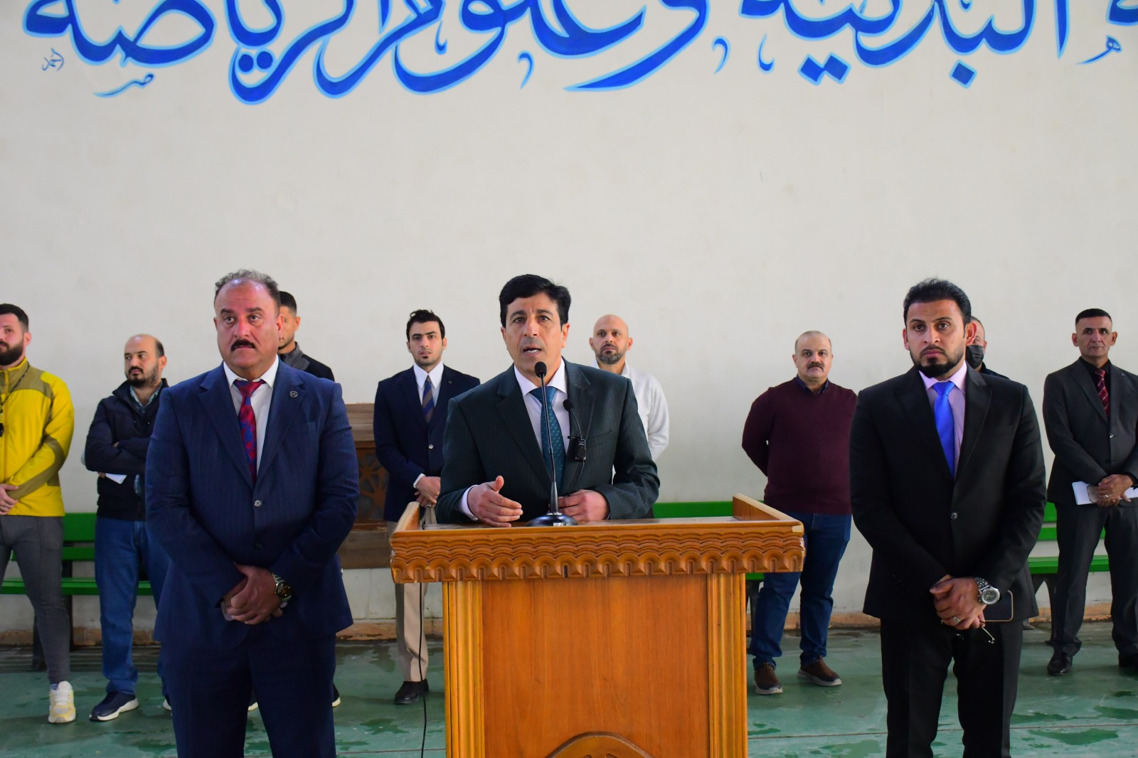 أستقبل السيد عميد كلية التربية البدنية وعلوم الرياضة في جامعة تكريت الأستاذ المساعد الدكتور عبدالله محمد طياوي المحترم والسيد معاون العميد للشؤون العلمية الأستاذ الدكتور حميد احمد محمد المحترم والسيد معاون العميد للشؤون الإدارية الأستاذ المساعد الدكتور سالم خلف فهد المحترم والسادة رؤساء الفروع العلمية ومجموعة من السادة التدريسيين المحترمون صباح اليوم الأحد الموافق 10 \ 11 \ 2024 أبناءنا الطلبة الأعزاء المقبولين في كليتنا والذين سجلوا مباشرتهم في الدراسة الأولية ( الصباحي) للعام الدراسي 2024 - 2025 .