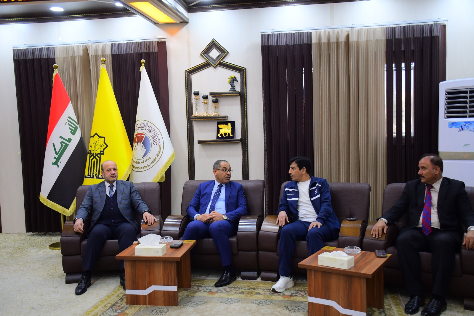 زار السيد وكيل وزير التربية للشؤون الإدارية والمالية الأستاذ الدكتور محمد ضايع محمد العزاوي كليتنا وكان في استقباله السيد عميد الكلية الأستاذ المساعد الدكتور عبدالله محمد طياوي وعدد من تدريسيي الكلية ، تم خلال الزيارة عمل جولة ميدانية داخل اروقة الكلية والألتقاء بعدد من التدريسيين ، وتأتي هذه الزيارة لتوثيق العلاقات الثنائية بين مؤسسات الدولة وتعزيز التعاون في ما بينها خدمةً لعراقنا الحبيب .