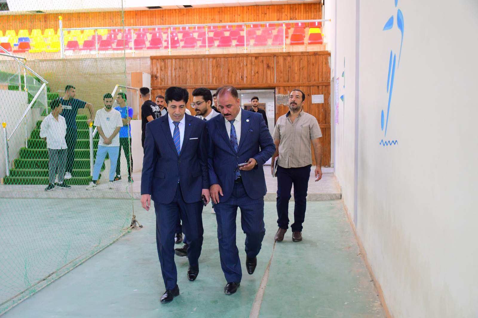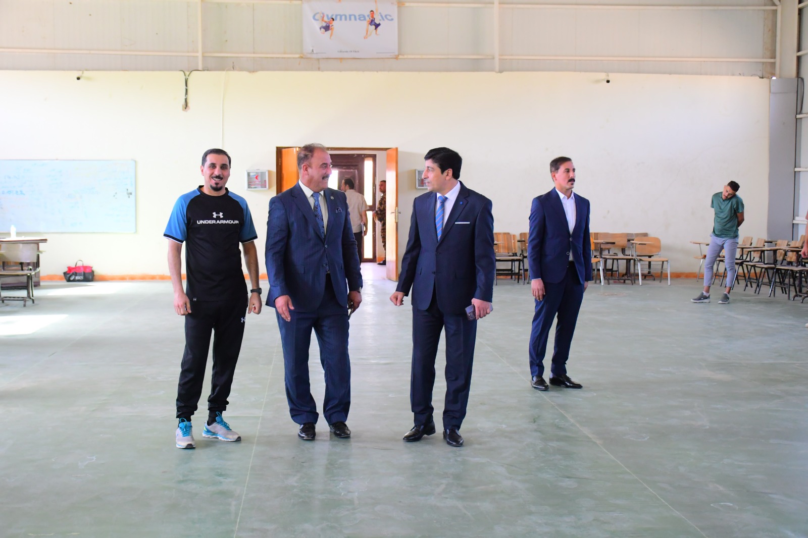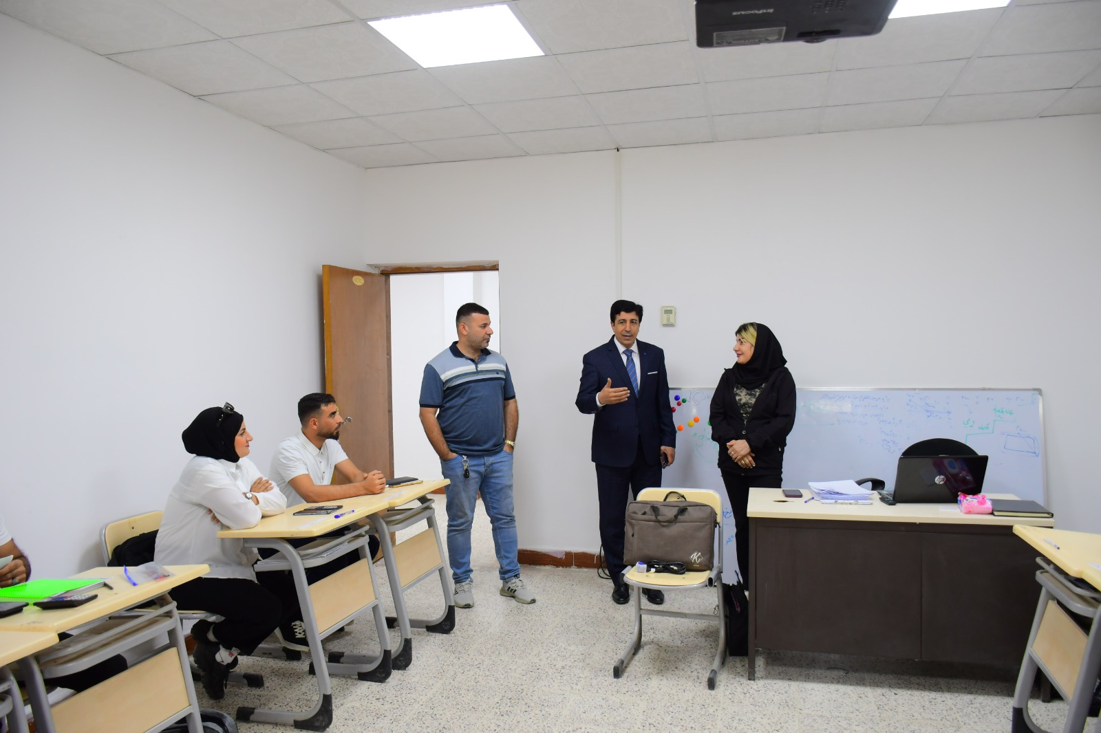 تفقد السيد عميد كلية التربية البدنية وعلوم الرياضة في جامعة تكريت الأستاذ المساعد الدكتور عبدالله محمد طياوي وبرفقته السيد معاون العميد للشؤون العلمية الأستاذ الدكتور حميد احمد محمد سير العملية التعليمية في الكلية ، حيث تم تفقد القاعات الدراسية والالتقاء بالتدريسيين والطلبة ، وأكد السيد العميد المحترم خلال اللقاء بأبناءه الطلبة على ضرورة مضاعفة الجهود، وكذلك الإلتزام بالدوام والزي الرسمي من أجل الارتقاء بالعملية التعليمية وتحقيق أفضل النتائج العلمية والاكاديمية .