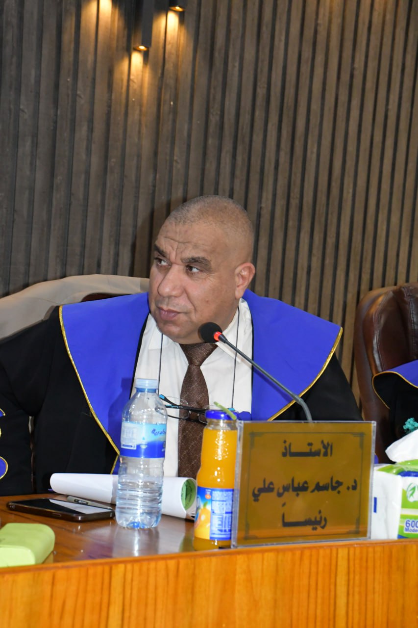 ترأسَ الأستاذ الدكتور جاسم عباس علي لجنة مناقشة رسالة طالب الماجستير ( جهاد كرم علي ) الموسومة ( المناخ النفسي وعلاقته بتماسك الجماعة للاعبي شباب الدوري الممتاز بكرة القدم ) وذلك في تمام الساعة التاسعة من صباح يوم الثلاثاء الموافق 3 / 9 / 2024 وعلى قاعة مناقشات كلية التربية البدنية وعلوم الرياضة في جامعة بغداد ، حيث تكونت لجنة المناقشة من اسماء السادة ادناه :-