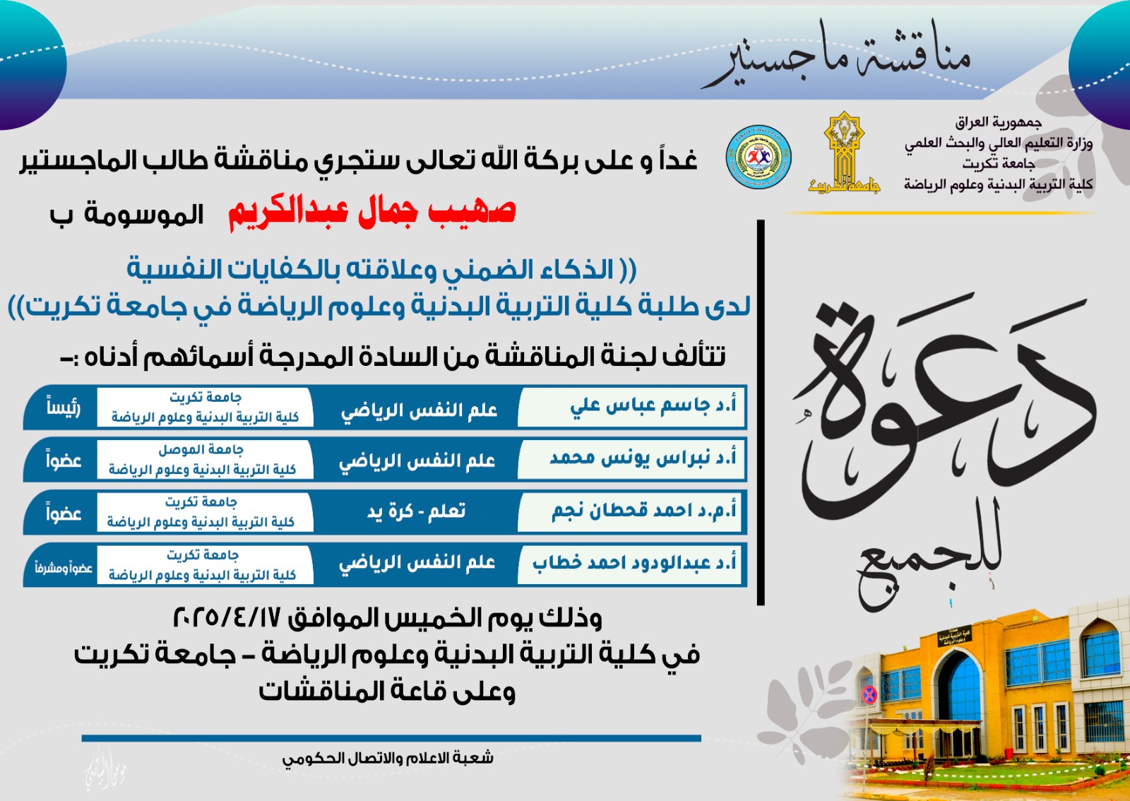 جامعة تكريت / كلية التربية البدنية وعلوم الرياضة