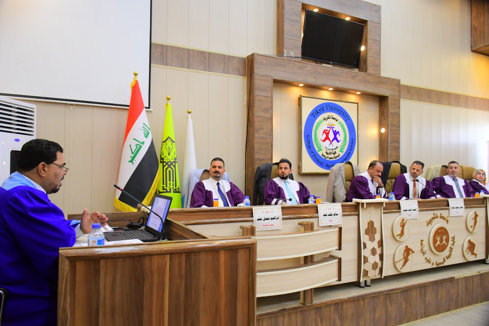 نوقشت في كلية التربية البدنية وعلوم الرياضة - جامعة تكريت اطروحة طالب الدكتوراه ( مصطفى طالب حمادي ) الموسومة ( الرشاقة التنظيمية ودورها في الحد من التكاسل الوظيفي وفق منظور النزاهة السلوكية لمدراء اقسام الموهبة الرياضية من وجهة نظر المشرفين الرياضيين ) وذلك يوم الاثنين الموافق 2024/6/3 و على قاعة المناقشات الكبرى في كلية التربية البدنية وعلوم الرياضة - جامعة تكريت ، وقد حضر المناقشة عميد الكلية الاستاذ المساعد الدكتور عبدالله محمد طياوي ، وقد أثنى على الجهود المبذولة من قبل الاساتذة المناقشين مثمناً دقة ملاحظاتهم وصوابها والمستوى العلمي الكبير لهذه المناقشات ودورها في تحقيق الرصانة العلمية والمستوى العلمي الذي تطمح وتسعى إليه كليتنا وبما يليق بجامعة تكريت كمنارة وصرح علمي كبير. حيث تألفت لجنة المناقشة من السادة المدرجة اسمائهم ادناه :