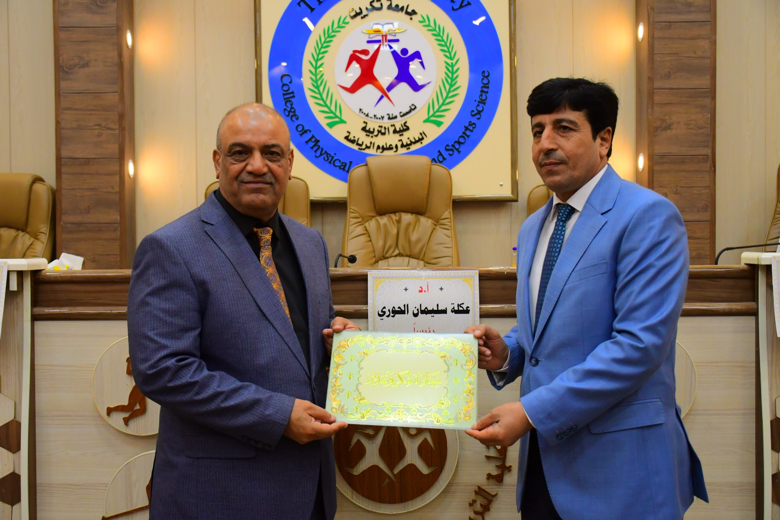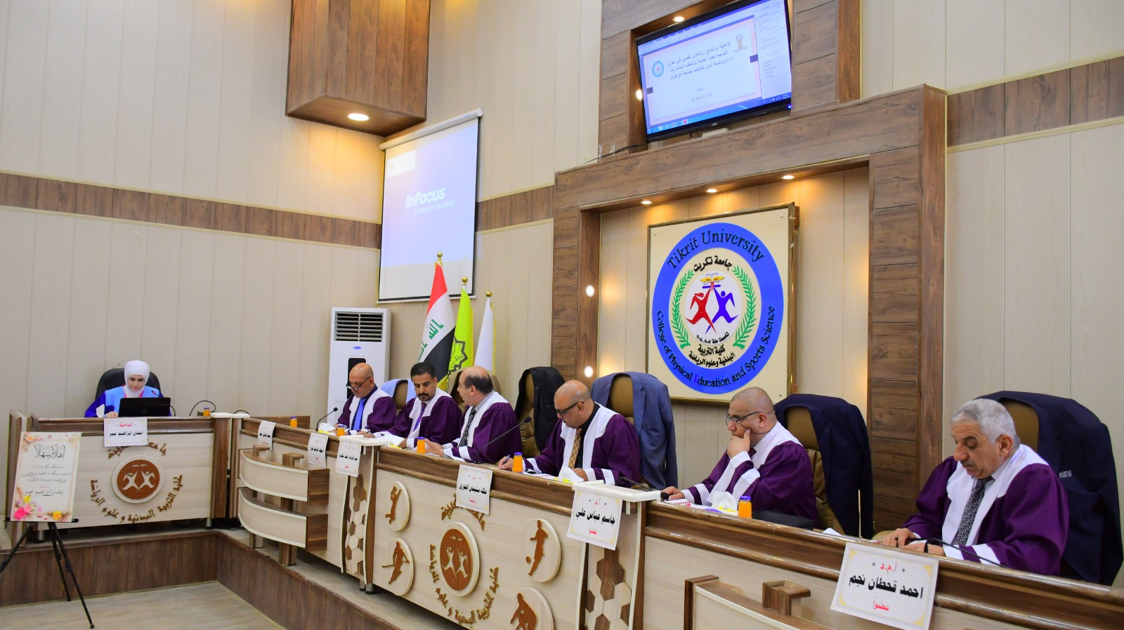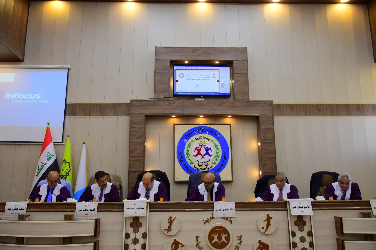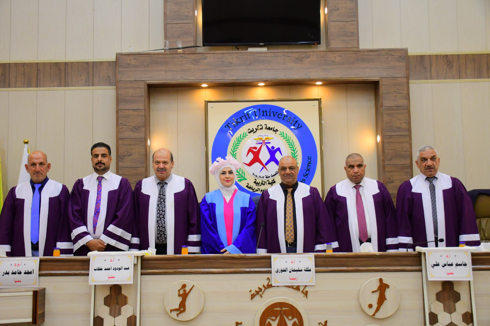نوقشت في كلية التربية البدنية وعلوم الرياضة - جامعة تكريت اطروحة طالبه الدكتوراه ( ايشان ابراهيم عمر ) الموسومة ( فاعلية برنامج ارشادي نفسي في تعزيز التوجه نحو الحياة وشغف المشاركة الرياضية لدى طالبات جامعة كركوك ) وذلك يوم الثلاثاء الموافق 2024/6/4 و على قاعة المناقشات الكبرى في كلية التربية البدنية وعلوم الرياضة - جامعة تكريت ، وقد حضر المناقشة عميد الكلية الاستاذ المساعد الدكتور عبدالله محمد طياوي ، وقد أثنى على الجهود المبذولة من قبل الاساتذة المناقشين مثمناً دقة ملاحظاتهم وصوابها والمستوى العلمي الكبير لهذه المناقشات ودورها في تحقيق الرصانة العلمية والمستوى العلمي الذي تطمح وتسعى إليه كليتنا وبما يليق بجامعة تكريت كمنارة وصرح علمي كبير. حيث تألفت لجنة المناقشة من السادة المدرجة اسمائهم ادناه :