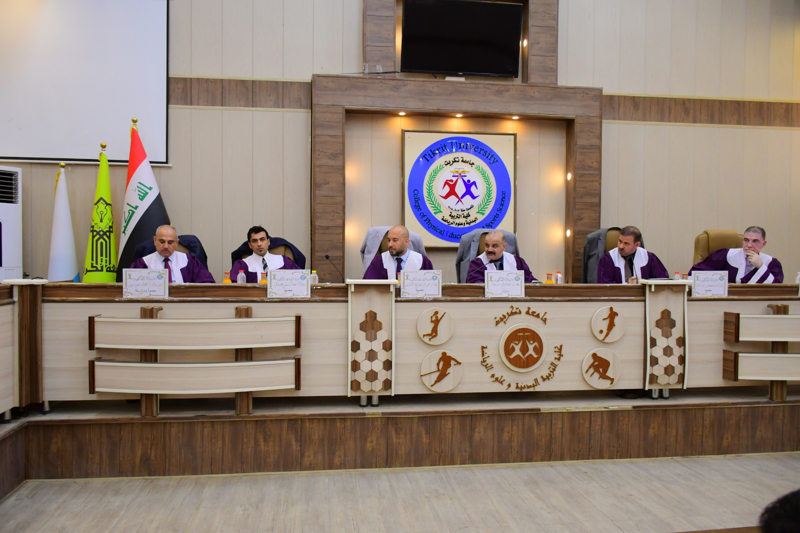نوقشت في كلية التربية البدنية وعلوم الرياضة - جامعة تكريت اطروحة طالبة الدكتوراه ( ميساء خالد احمد ) الموسومة ( تأثير اسلوبي التدريب الذهني وفق تصنيف لابان في تنمية بعض القدرات الادراكية الحس حركية وتعلم عدد من المهارات الاساسية بكرة القدم الصالات ) وذلك يوم الثلاثاء الموافق 2024/9/17 و على قاعة المناقشات الكبرى في كلية التربية البدنية وعلوم الرياضة - جامعة تكريت ، حيث تألفت لجنة المناقشة من السادة المدرجة اسمائهم ادناه :