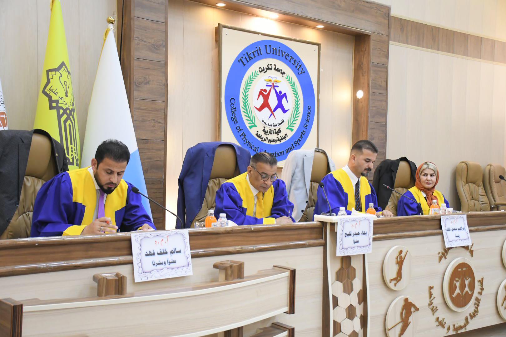 نوقشت في كلية التربية البدنية وعلوم الرياضة بجامعة تكريت، رسالة طالب الماجستير ( عامر نجم عبدالله ) الموسومة ( دور القدرات التكنولوجية في تعزيز الديمومة التنظيمية لمنتسبي اقسام النشاطات الطلابية لعدد من الجامعات العراقية ) وذلك في تمام الساعة التاسعة صباحاً من يوم الاثنين الموافق 2025/4/28 و على قاعة المناقشات الكبرى في كلية التربية البدنية وعلوم الرياضة بجامعة تكريت ، حيث تألفت لجنة المناقشة من السادة المدرجة اسمائهم ادناه :