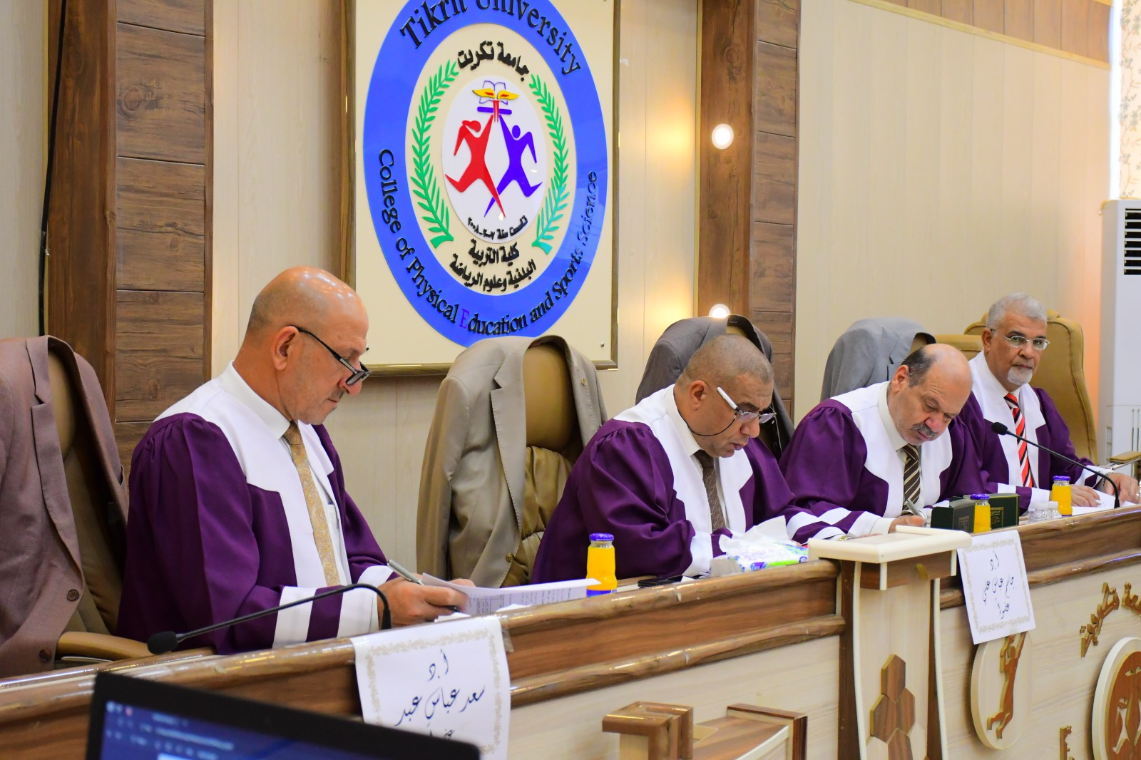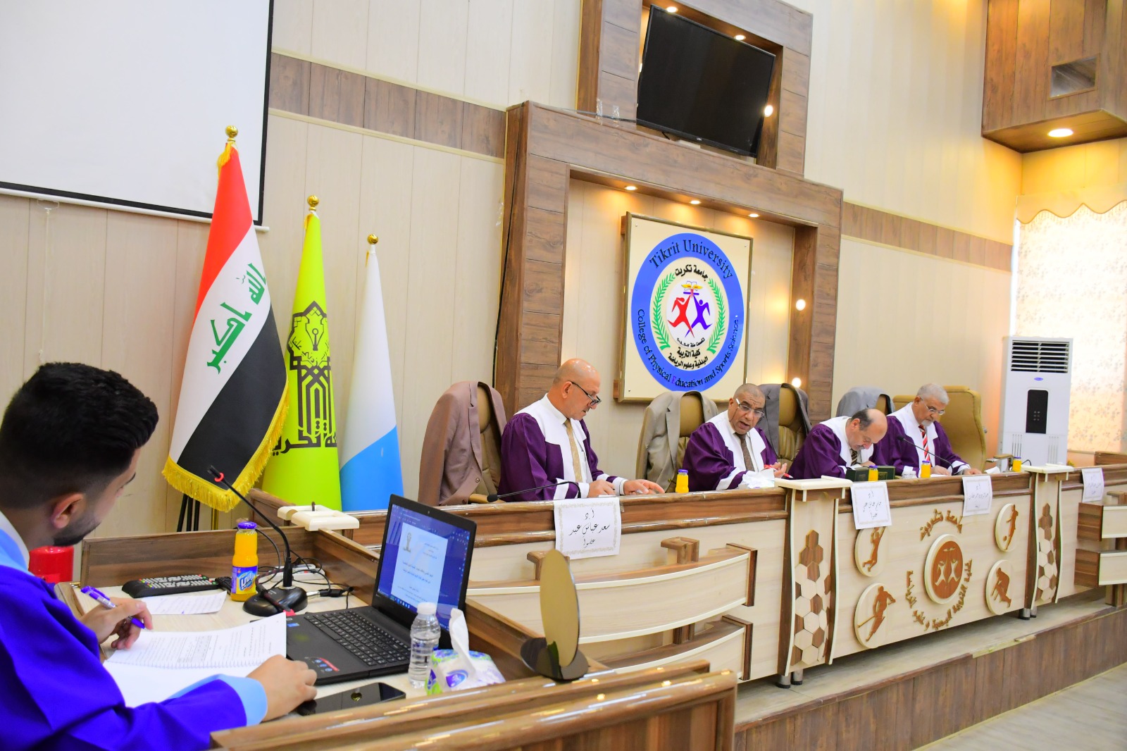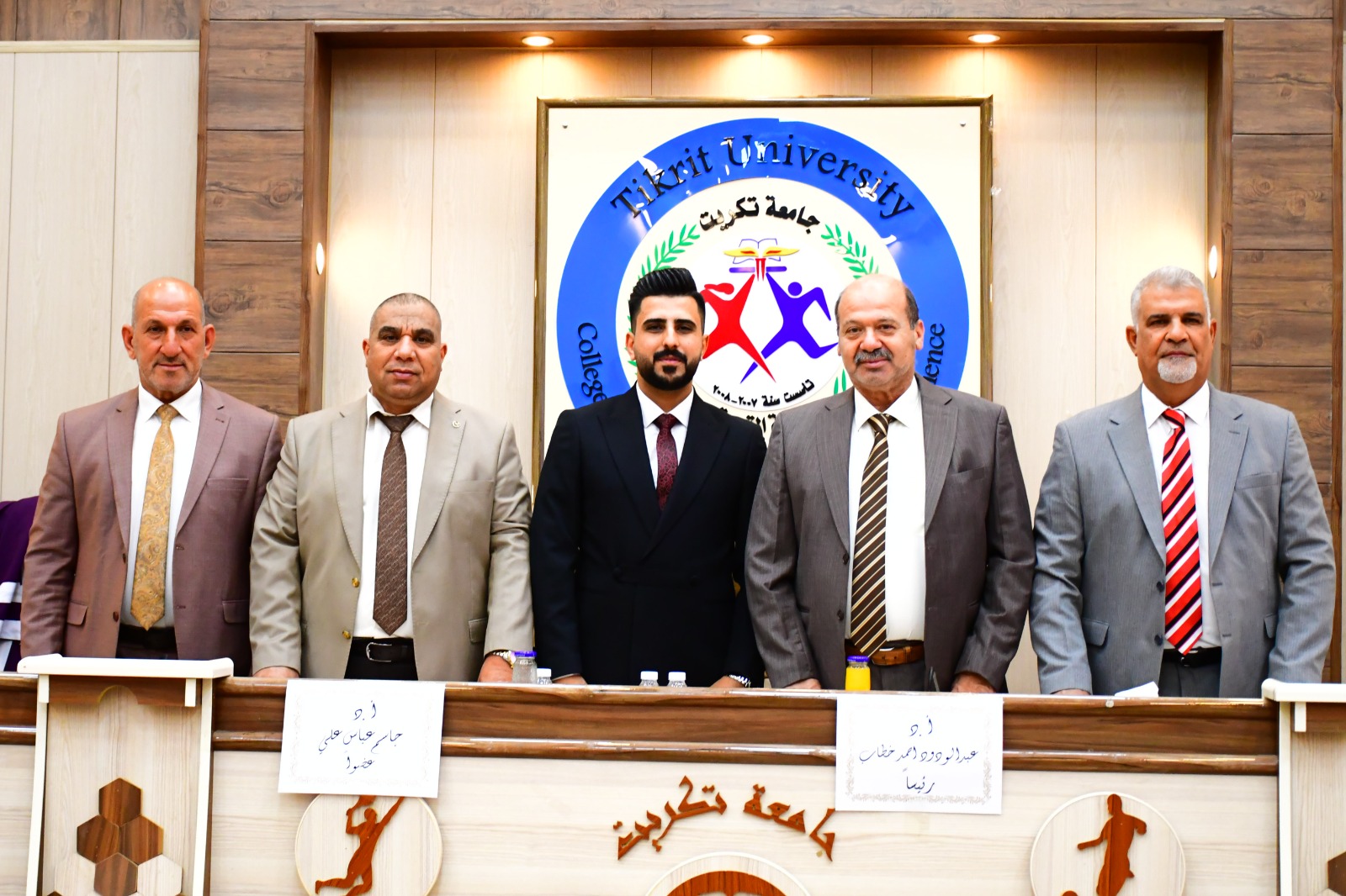 نوقشت في كلية التربية البدنية وعلوم الرياضة - جامعة تكريت رسالة طالب الماجستير ( محمد خزعل درويش ) الموسومة ( الوجود النفسي وعلاقته بالعوامل الخمسة الكبرى للشخصية لدى طلبة بعض كليات التربية البدنية وعلوم الرياضة ) وذلك يوم الخميس الموافق 2024/6/6 و على قاعة المناقشات الكبرى في كلية التربية البدنية وعلوم الرياضة - جامعة تكريت ، وقد حضر المناقشة عميد الكلية الاستاذ المساعد الدكتور عبدالله محمد طياوي ، و أثنى على الجهود المبذولة من قبل الاساتذة المناقشين مثمناً دقة ملاحظاتهم وصوابها والمستوى العلمي الكبير لهذه المناقشات ودورها في تحقيق الرصانة العلمية والمستوى العلمي الذي تطمح وتسعى إليه كليتنا وبما يليق بجامعة تكريت كمنارة وصرح علمي كبير. حيث تألفت لجنة المناقشة من السادة المدرجة اسمائهم ادناه :