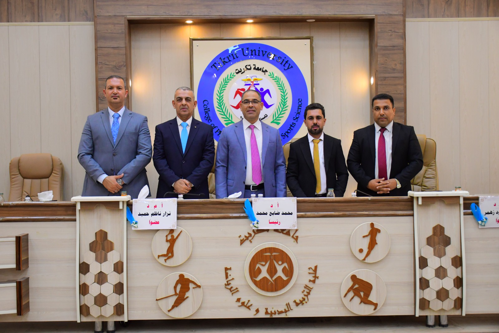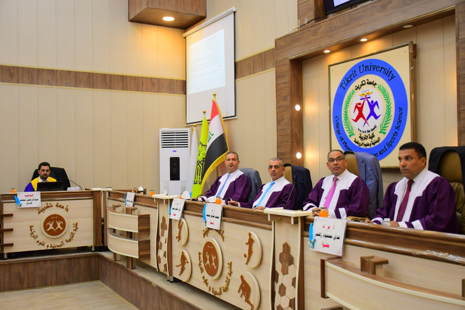نوقشت في كلية التربية البدنية وعلوم الرياضة - جامعة تكريت رسالة طالب الماجستير ( عبدالرحمن محمد كردي ) الموسومة ( تأثير الأشرطة والحبال المطاطية المصاحبة للتمرينات البدنية والمهارية في بعض مكونات اللياقة البدنية والمهارات الأساسية للاعبي كرة اليد الناشئين ) وذلك يوم الاربعاء الموافق 2024/9/25 و على قاعة المناقشات الكبرى في كلية التربية البدنية وعلوم الرياضة - جامعة تكريت ، حيث تألفت لجنة المناقشة من السادة المدرجة اسمائهم ادناه :