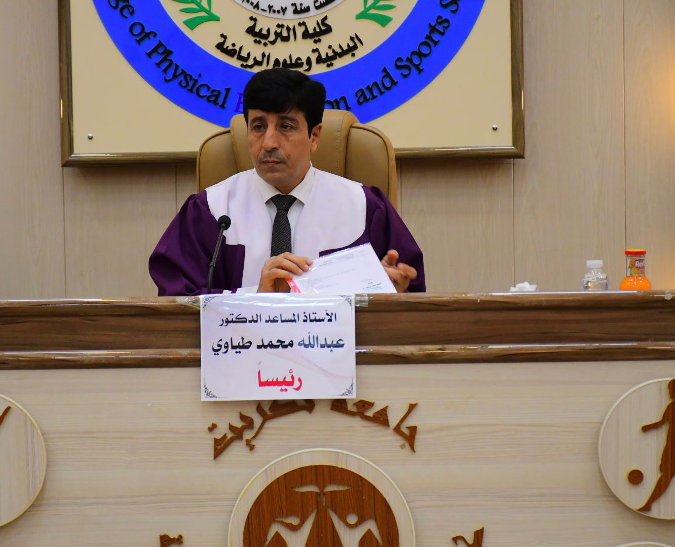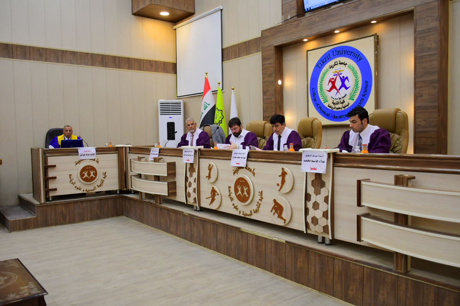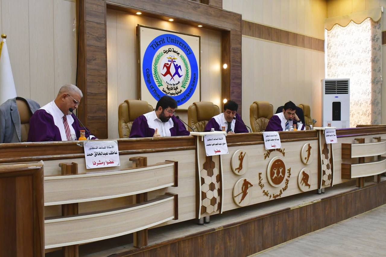 نوقشت في كلية التربية البدنية وعلوم الرياضة - جامعة تكريت رسالة طالب الماجستير ( خالد نواف فياض ) الموسومة ( تأثير تمرينات خاصة وفق النظام الفوسفاجيني في بعض المتغيرات البدنية والمهارية والقدرة اللاهوائية القصوى للاعبي كرة القدم الشباب ) وذلك يوم الاربعاء الموافق 2024/8/21 و على قاعة المناقشات الكبرى في كلية التربية البدنية وعلوم الرياضة - جامعة تكريت ، حيث تألفت لجنة المناقشة من السادة المدرجة اسمائهم ادناه :