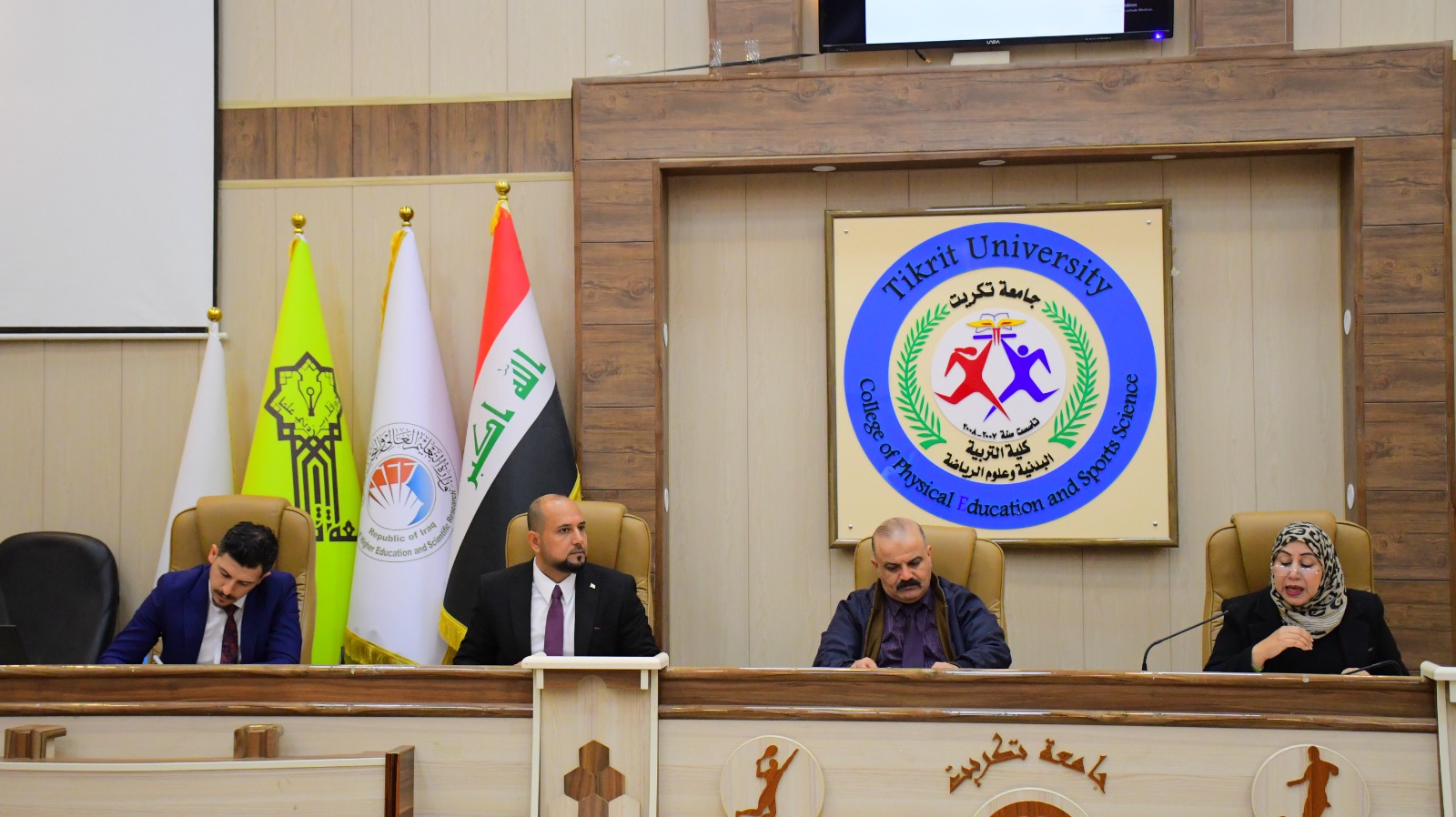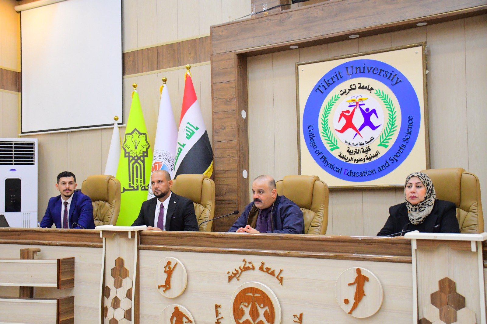 أقامت الشعبة العلمية في عمادة كلية التربية البدنية وعلوم الرياضة بالتعاون مع مركز التعليم المستمر في جامعة تكريت ، ندوة بعنوان ( الرياضة الجامعية وسيلة فعالة في محاربة الأفكار المتطرفة داخل الحرم الجامعي ) ، والتي أُقيمت حضورياً في تمام الساعة العاشرة صباحاً من يوم الأثنين الموافق 27 \ 1 \ 2025 على قاعة المناقشات الكبرى في كلية التربية البدنية وعلوم الرياضة - جامعة تكريت ، وتألفت لجنة الندوة من السادة المدرجة أسمائهم ادناه :-