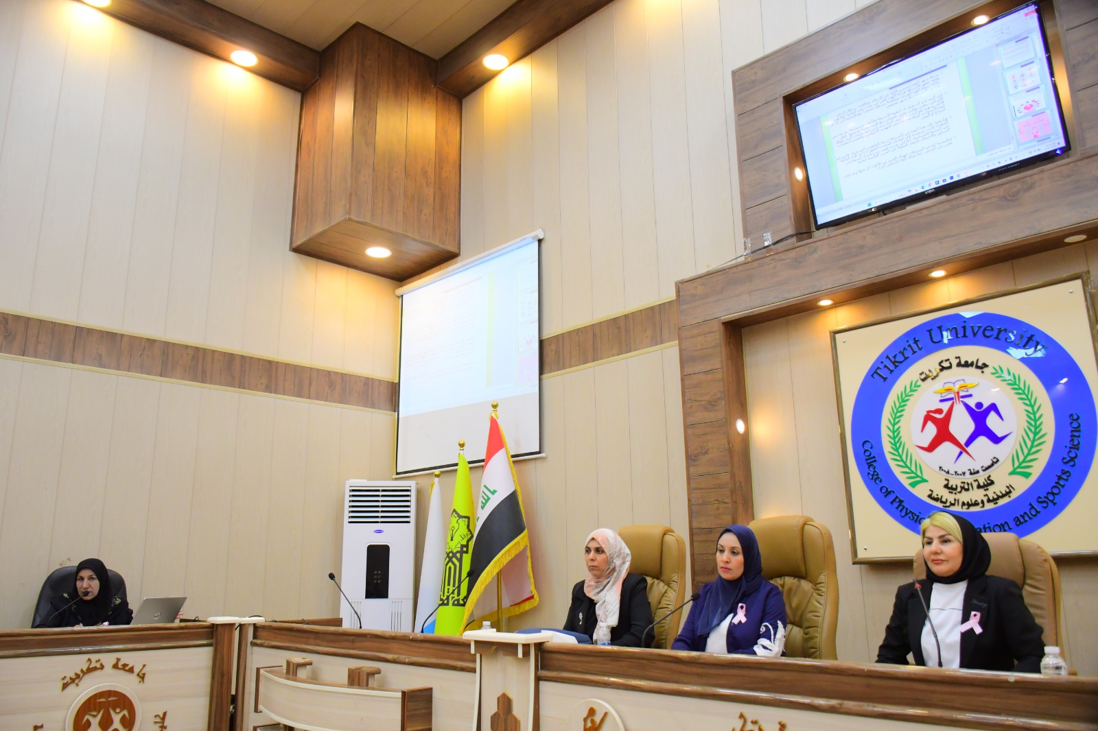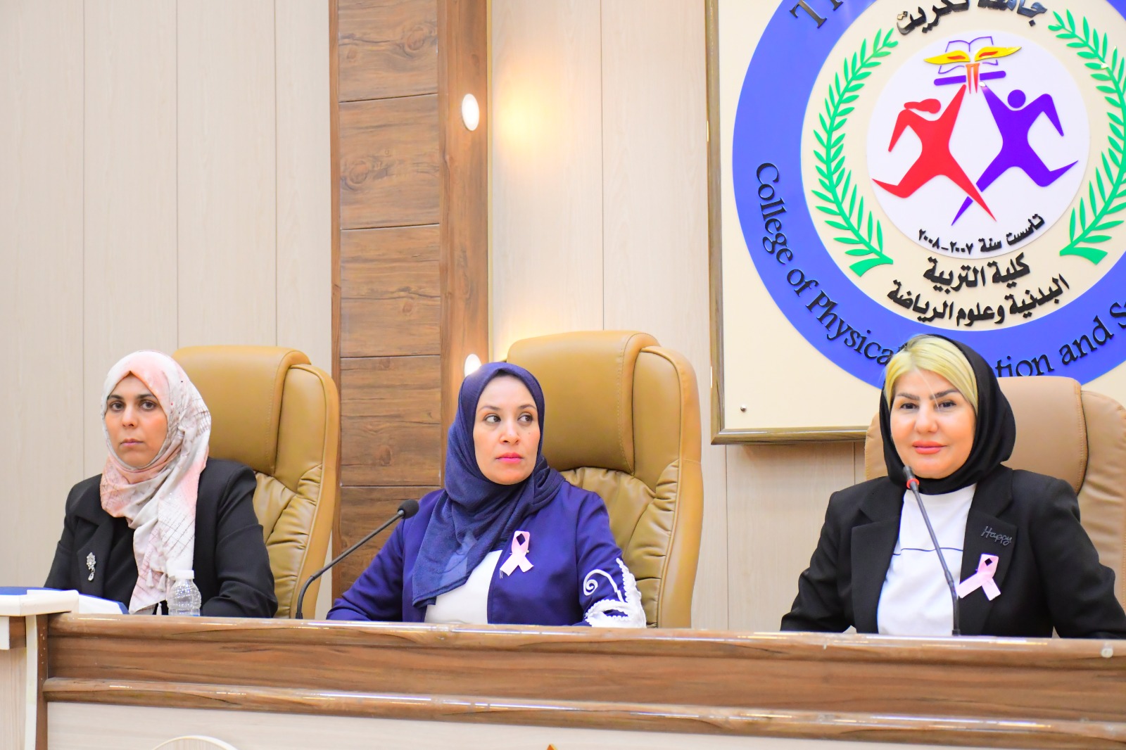 أقامت الشعبة العلمية و وحدة شؤون المرأة في عمادة كلية التربية البدنية وعلوم الرياضة بالتعاون مع مركز التعليم المستمر في جامعة تكريت و وحدة شؤون المرأة في كلية التمريض ، ندوة علمية بعنوان ( توعية ضد سرطان الثدي ) والتي اقيمت حضورياً يوم الاثنين الموافق 28 \ 10 \ 2024 في تمام الساعة العاشرة صباحاً وعلى قاعة المناقشات الكبرى في كلية التربية البدنية وعلوم الرياضة - جامعة تكريت ، حيث تكونت لجنة الندوة من أسماء السادة ادناه :-