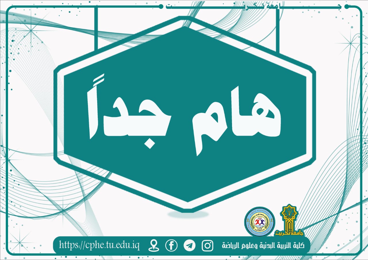 وجه السيد رئيس فرع الألعاب الفردية الأستاذ الدكتور نكتل مزاحم خليل المسؤول على المرحلة الدراسية الأولى في الكلية ، بضرورة إلتزام الطلبة بالدوام وحسب الشعبة التي يظهر أسم الطالب فيها .