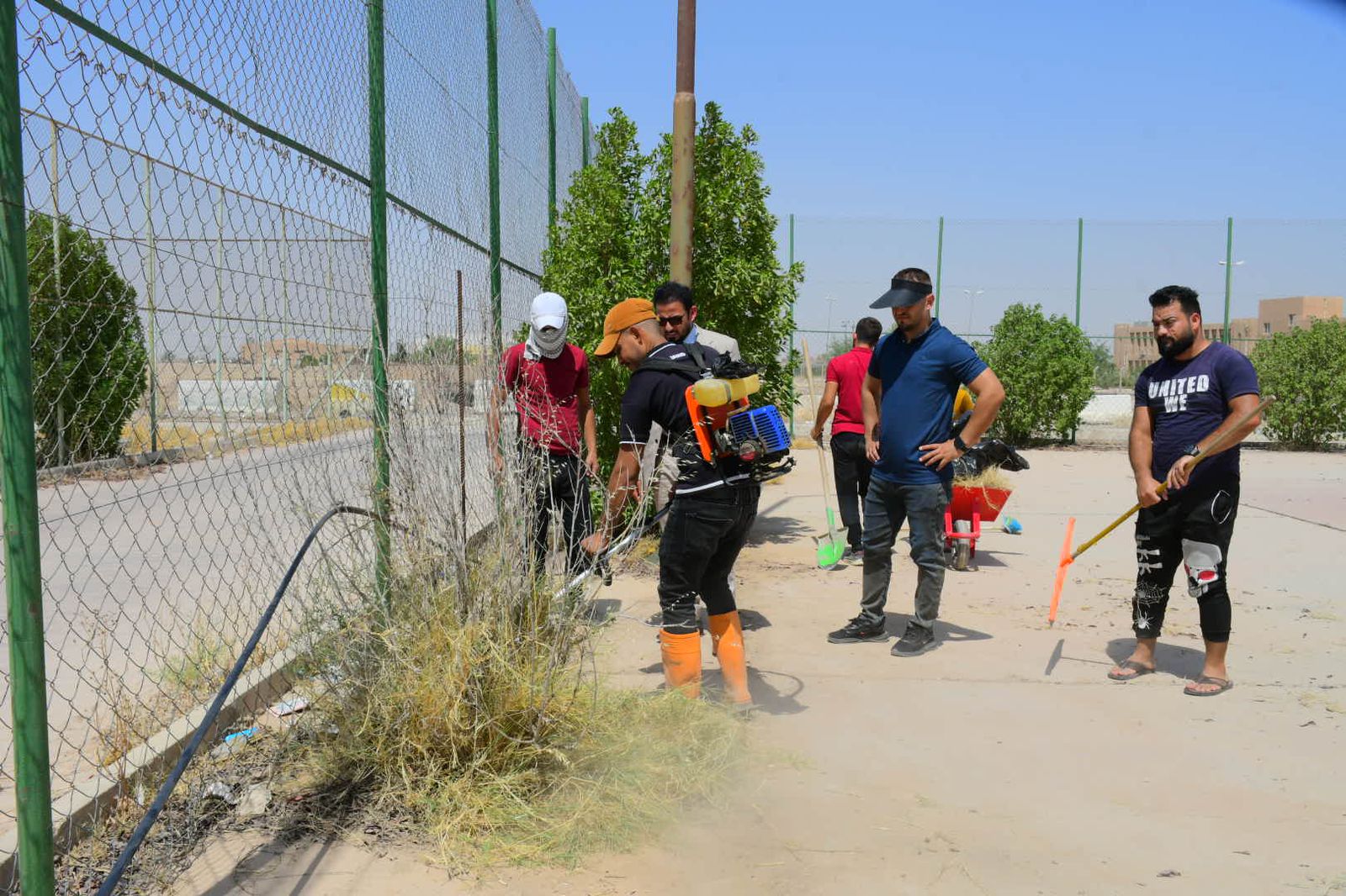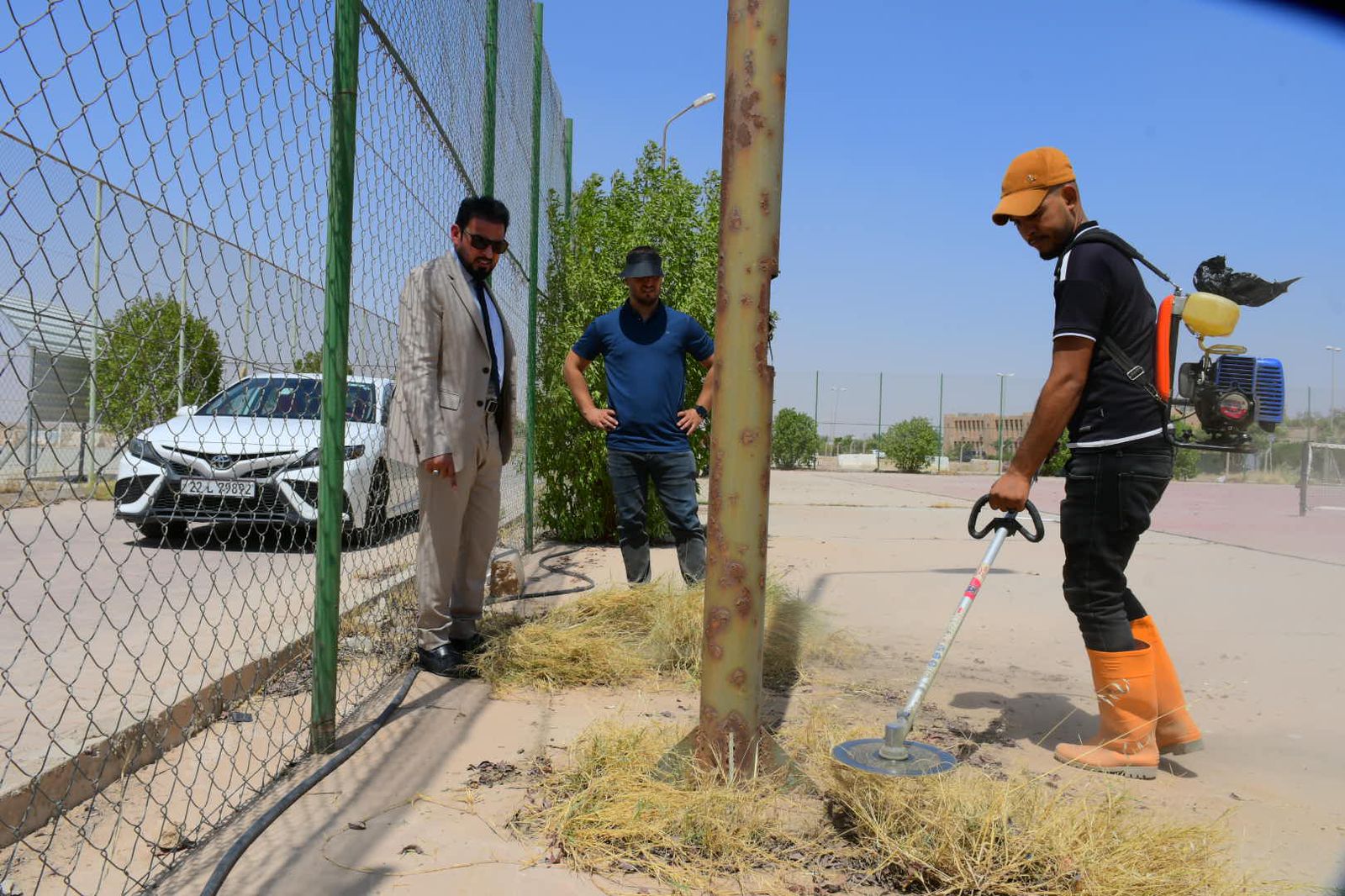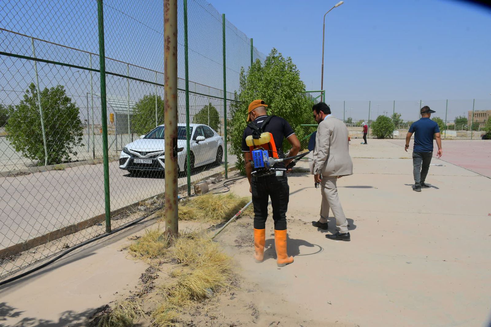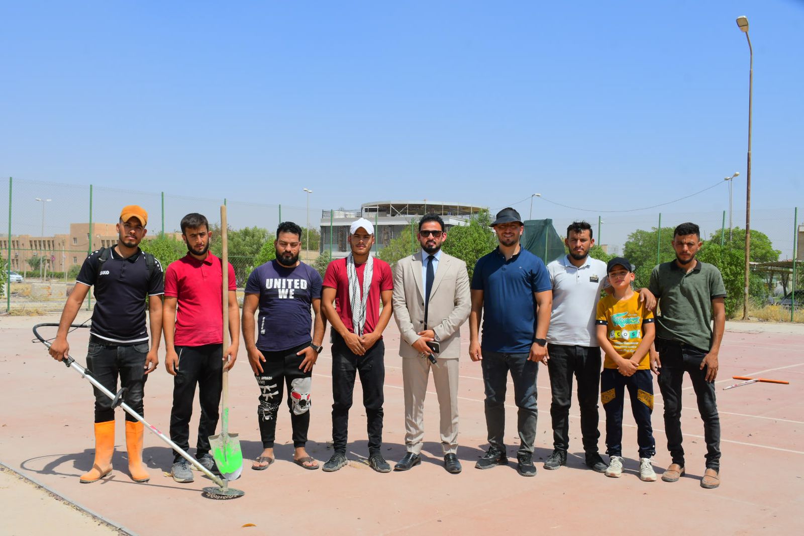 بتوجيه من السيد عميد كلية التربية البدنية وعلوم الرياضة الأستاذ المساعد الدكتور عبدالله محمد طياوي المحترم وباشراف مباشر من قبل السيد معاون العميد للشؤون الادراية الأستاذ المساعد الدكتور سالم خلف فهد المحترم ومتابعة مسؤول شعبة الحدائق والخدمات السيد قصي عماد الدين عمر وبجهود موظفي الخدمات ، قام موظفي الشعبة ومنذ صباح هذا اليوم الاحد الموافق 1 \ 9 \ 2024 باعمال تنظيف شملت الملاعب الخارجية المكشوفة ، و يأتي هذا العمل كجزء من الاعمال اليومية التي تقوم بها الشعبة قبل بدء العام الدراسي الجديد .