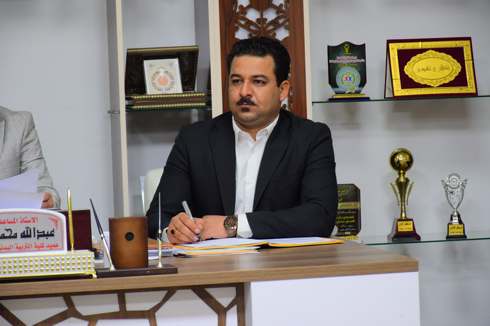 عقد مجلس كلية التربية البدنية وعلوم الرياضة - جامعة تكريت جلسته الحادية والعشرون للعام الدراسي 2023 - 2024 يوم الثلاثاء الموافق 6 / 8 / 2024 ، برئاسة عميد الكلية الأستاذ المساعد الدكتور عبدالله محمد طياوي المحترم وبحضور اعضاء المجلس كافة ، وقد استضاف المجلس الأستاذ الدكتور سرمد احمد موسى رئيس لجنة الترقيات في الكلية والأستاذ المساعد الدكتور امجد حامد بدر مسؤول الشعبة العلمية في الكلية وقد ناقش المجلس الفقرات التالية :-