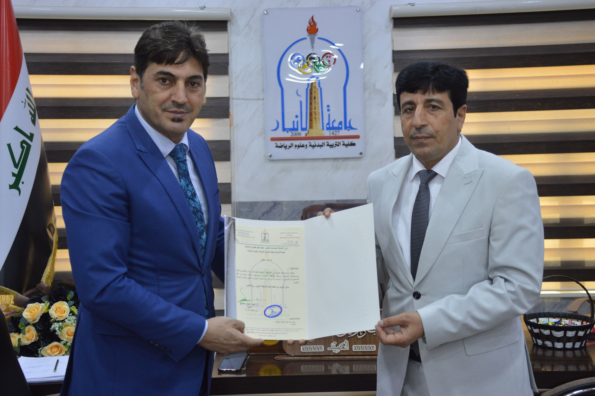 شاركَ السيد عميد الكلية الأستاذ المساعد الدكتور عبدالله محمد طياوي في عضوية لجنة مناقشة رسالة طالب الماجستير ( مصطفى قادر مهدي ) الموسومة ( تأثير تمرينات واقعية التدريب على تطوير تحمل الاداء وسرعة ودقة بعض المهارات الاساسية بكرة القدم للشباب باعمار (17-19) ) وذلك في تمام الساعة العاشرة من صباح يوم الاحد الموافق 18 / 8 / 2024 وعلى قاعة مناقشات كلية التربية البدنية وعلوم الرياضة في جامعة الانبار ، حيث تكونت لجنة المناقشة من اسماء السادة ادناه :-