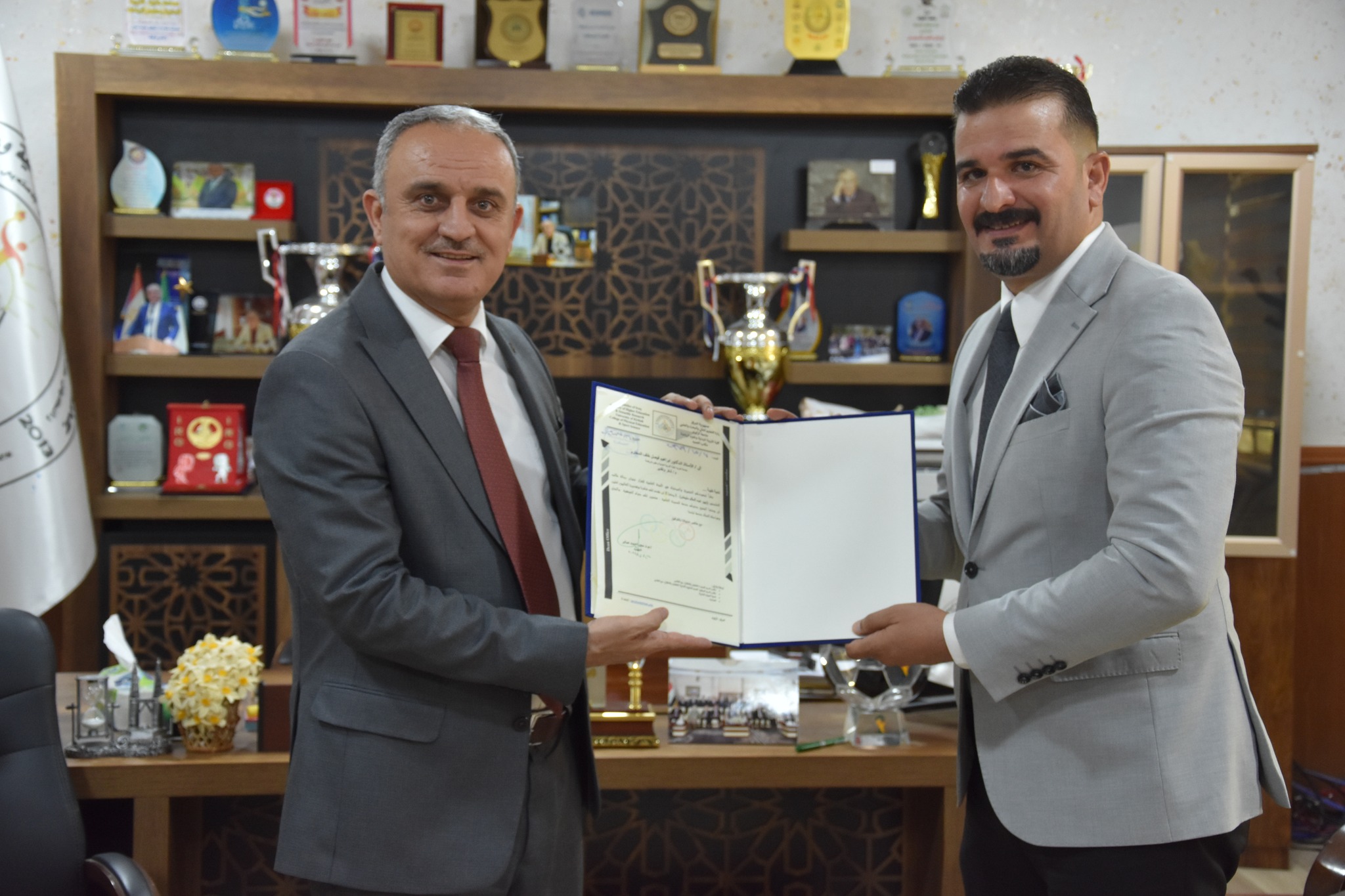شاركَ الأستاذ المساعد الدكتور ابراهيم فيصل خلف في عضوية لجنة مناقشة رسالة طالب الماجستير ( زبير عبدالسلام سليمان ) الموسومة ( البيئة الداخلية ودورها في الأداء الإداري لمسؤولي شعب النشاط الرياضي والمدرسي من وجهة نظر المشرفين الفنيين في العراق ) وذلك في تمام الساعة العاشرة من صباح يوم الخميس الموافق 18 / 7 / 2024 وعلى قاعة مناقشات كلية التربية البدنية وعلوم الرياضة في جامعة كركوك ، حيث تكونت لجنة المناقشة من اسماء السادة ادناه :-