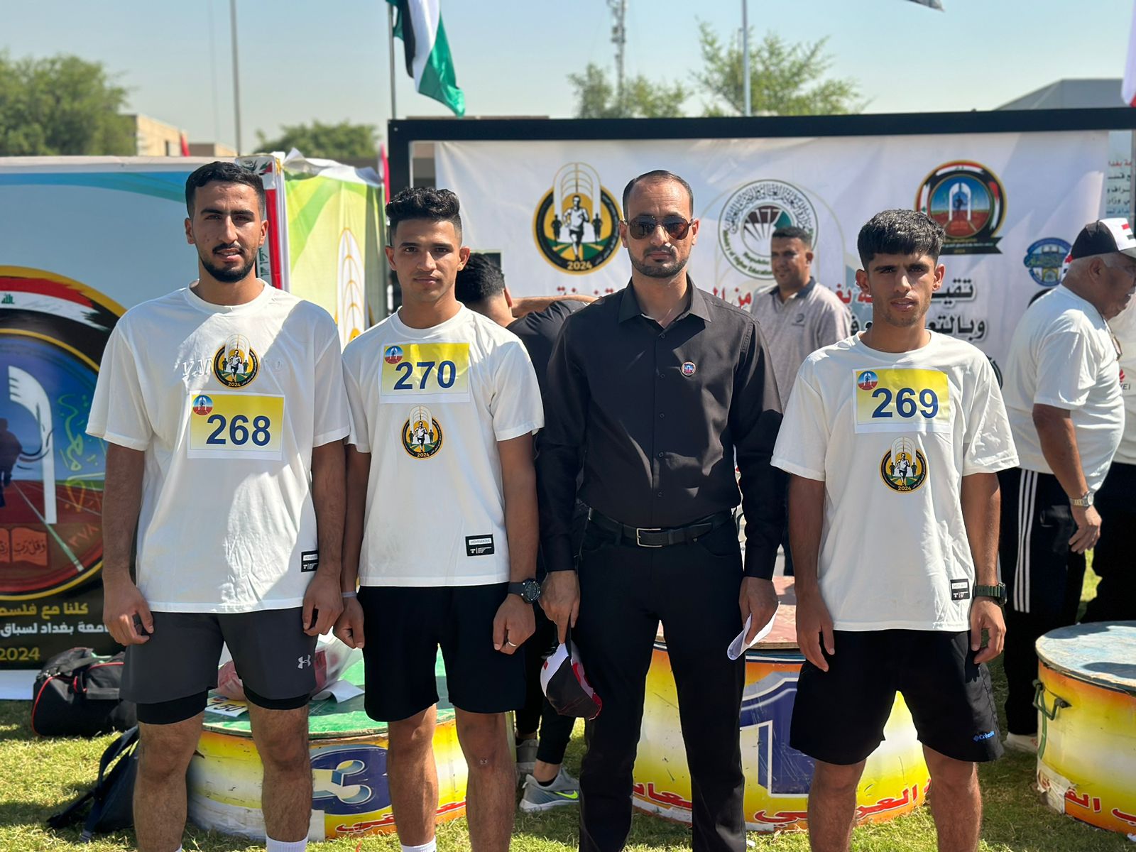 شاركَ الطلاب ( عبدالرحمن هيثم مهاوش ، اديب نجيب حاضر ، محمود مجبل صالح ) برئاسة المدرس الدكتور عمر عويد صالح ممثلين عن جامعة تكريت في ماراثون جامعة بغداد لسباق الطريق الدولي الثاني تحت شعار ( كلنا مع فلسطين ولبنان ) والذي جرى يوم الاثنين الموافق 7 \ 10 \ 2024 ، إذ حصل الطالب اديب نجيب حاضر على المركز السابع ، في حين حصل الطالب عبدالرحمن هيثم مهاوش على المركز الثاني والعشرون من اصل سبعمائة مشارك في الماراثون ومن كلا الجنسين ممثلين عن سبعين جامعة عراقية وعربية .