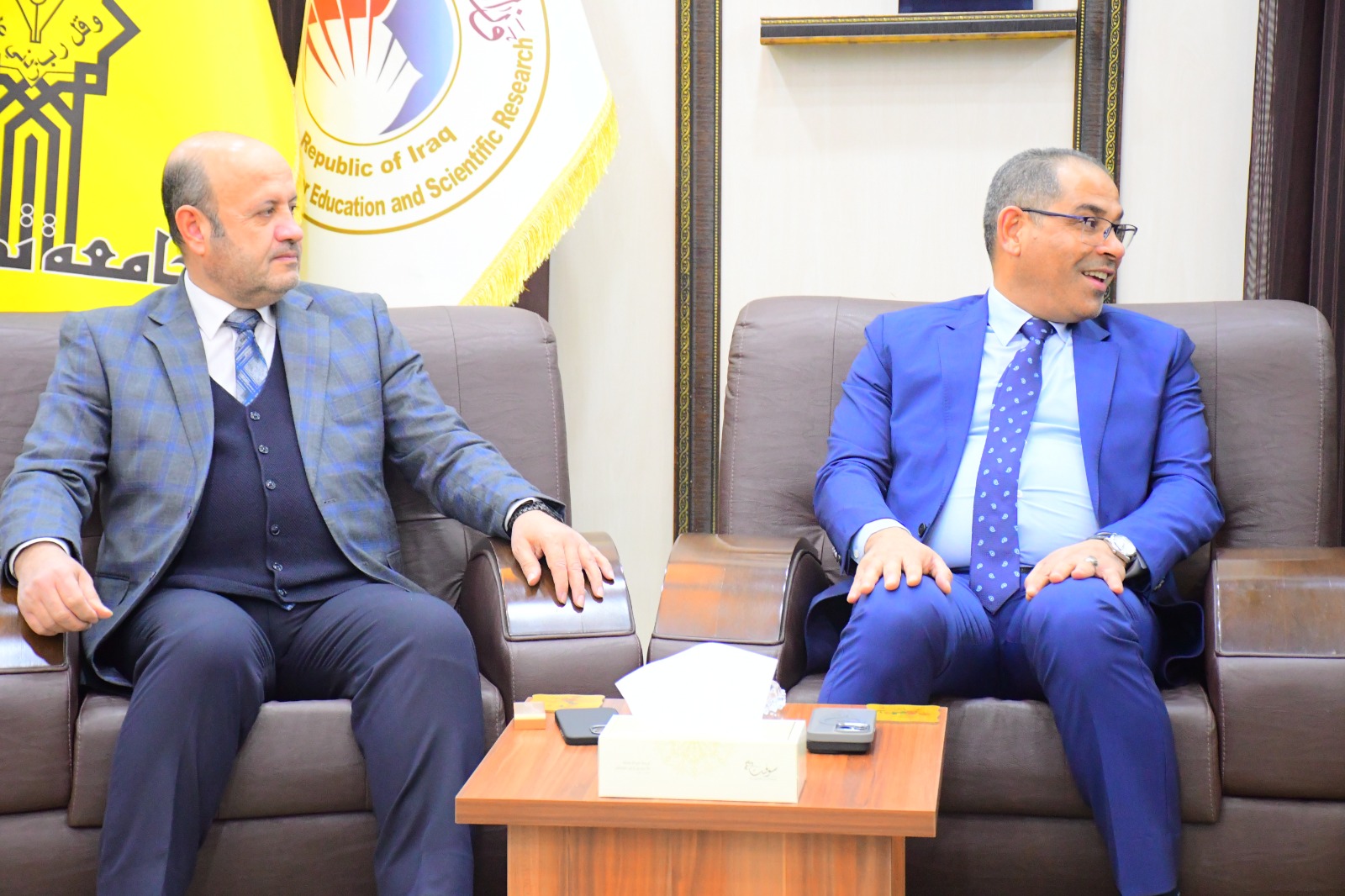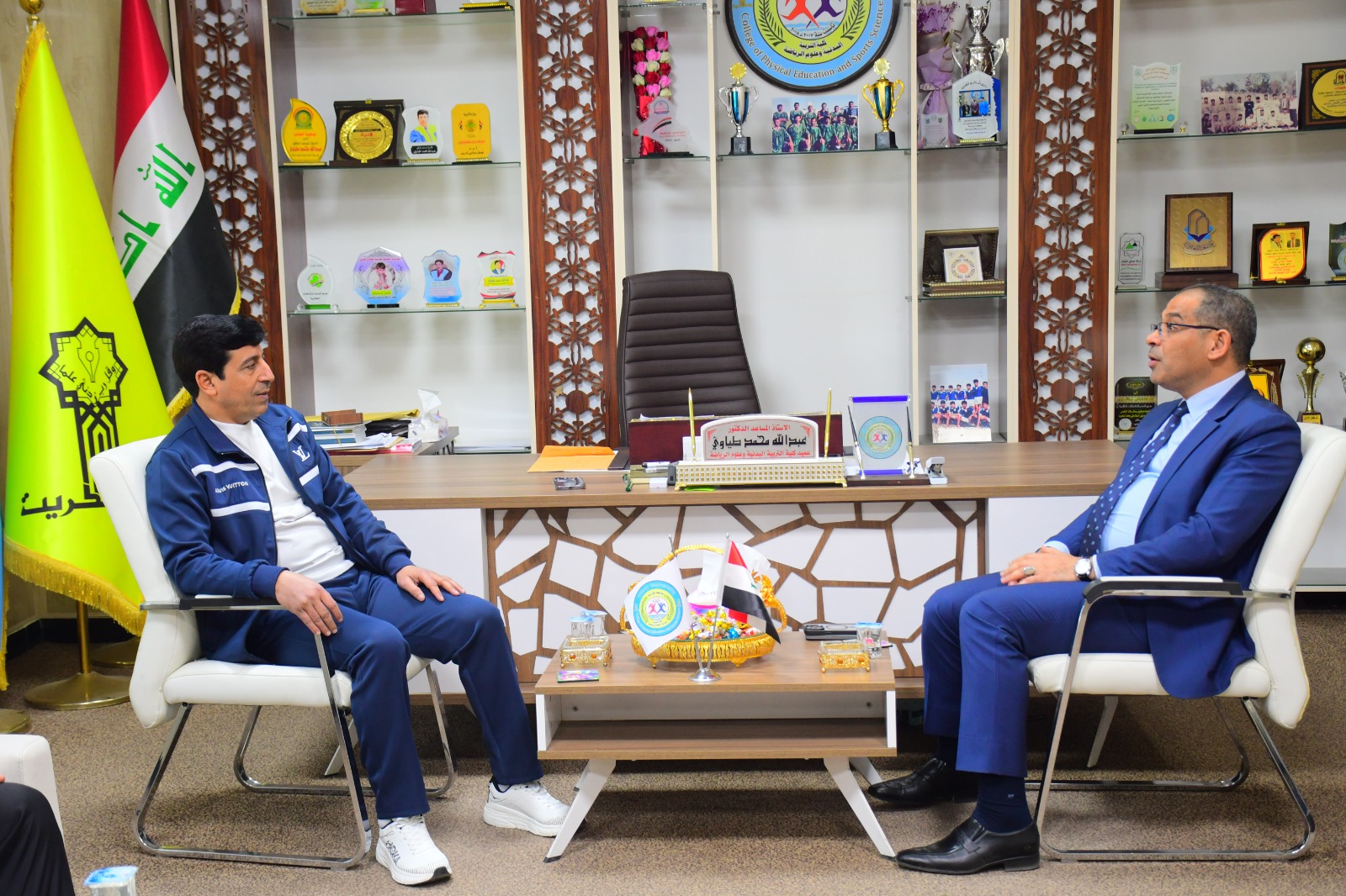 زار السيد وكيل وزير التربية للشؤون الإدارية والمالية الأستاذ الدكتور محمد ضايع محمد العزاوي كليتنا وكان في استقباله السيد عميد الكلية الأستاذ المساعد الدكتور عبدالله محمد طياوي وعدد من تدريسيي الكلية ، تم خلال الزيارة عمل جولة ميدانية داخل اروقة الكلية والألتقاء بعدد من التدريسيين ، وتأتي هذه الزيارة لتوثيق العلاقات الثنائية بين مؤسسات الدولة وتعزيز التعاون في ما بينها خدمةً لعراقنا الحبيب .