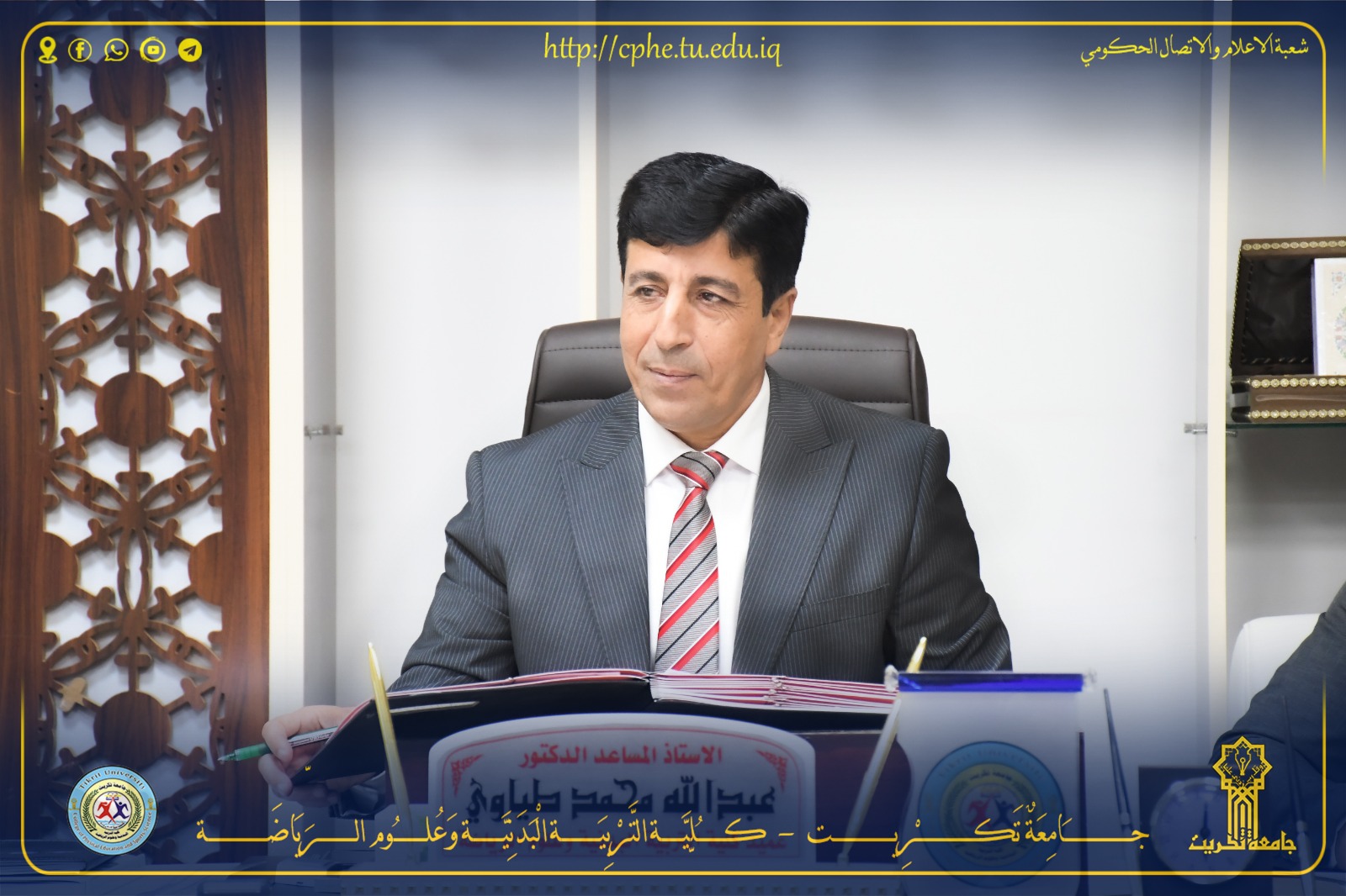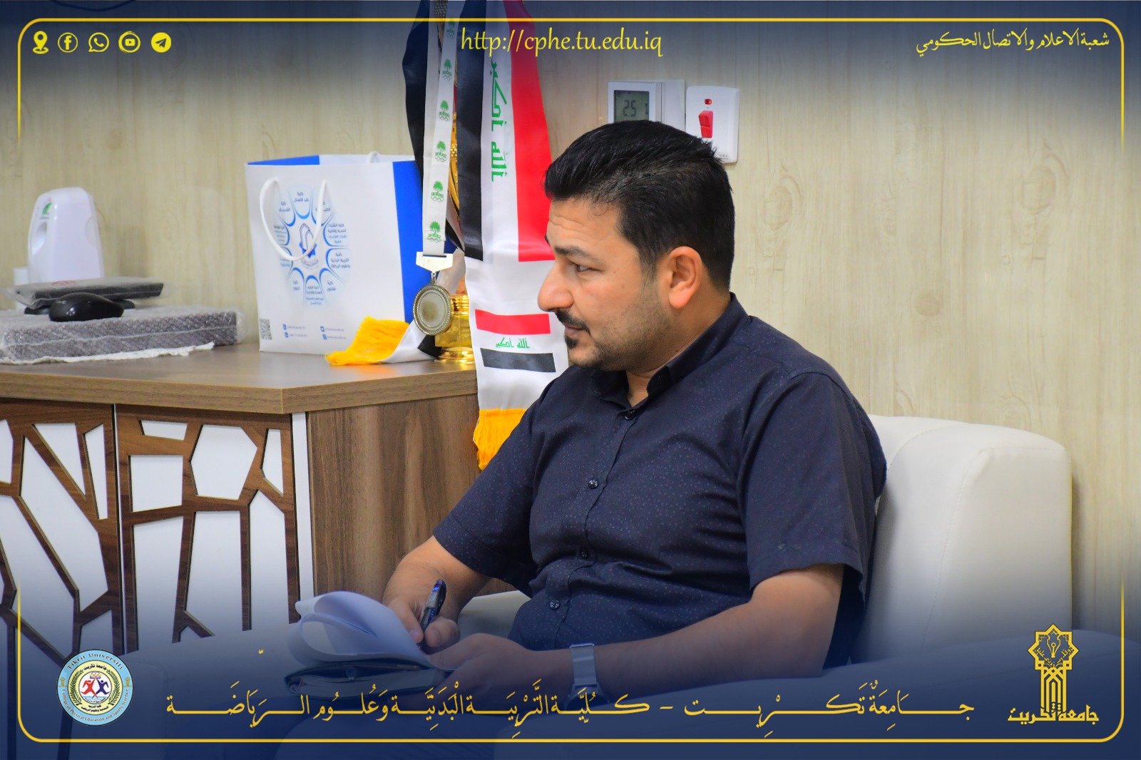 عقد مجلس كلية التربية البدنية وعلوم الرياضة بجامعة تكريت جلسته الخامسة عشر للعام الدراسي 2024 - 2025 يوم الاحد الموافق 11 / 5 / 2025 ، برئاسة السيد عميد الكلية الأستاذ المساعد الدكتور عبدالله محمد طياوي المحترم وبحضور اعضاء المجلس كافة ، حيث أستهل السيد عميد الكلية اللقاء بكلمة ترحيبية لأعضاء المجلس ومن ثم ناقش المجلس الفقرات التالية :-