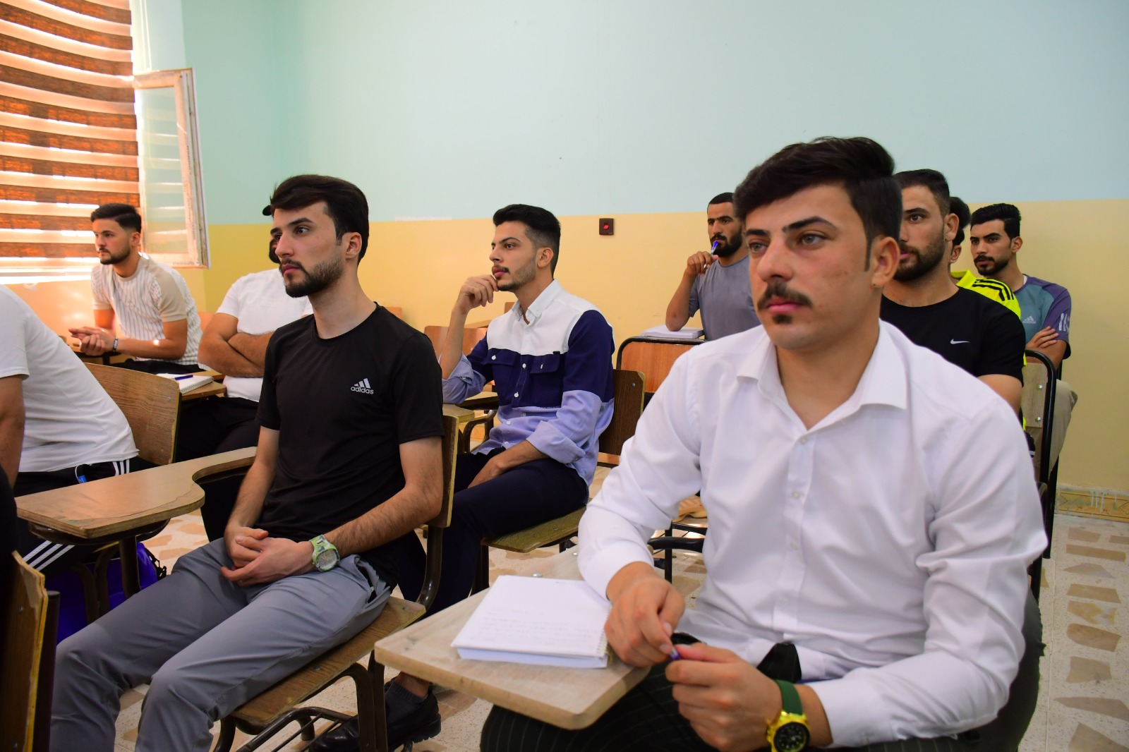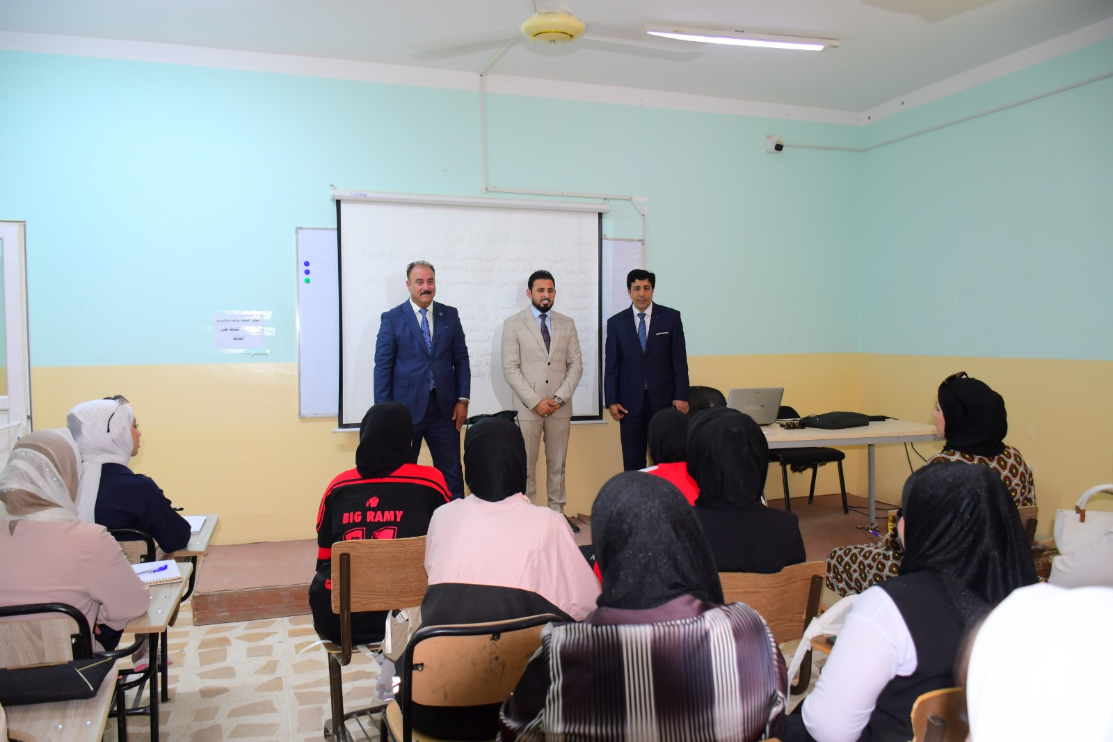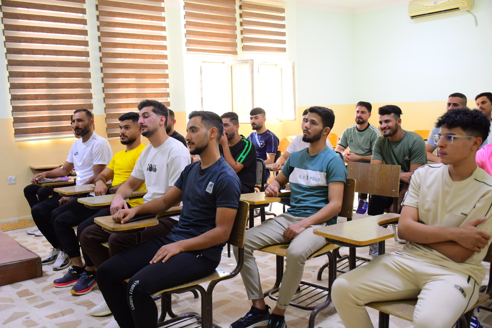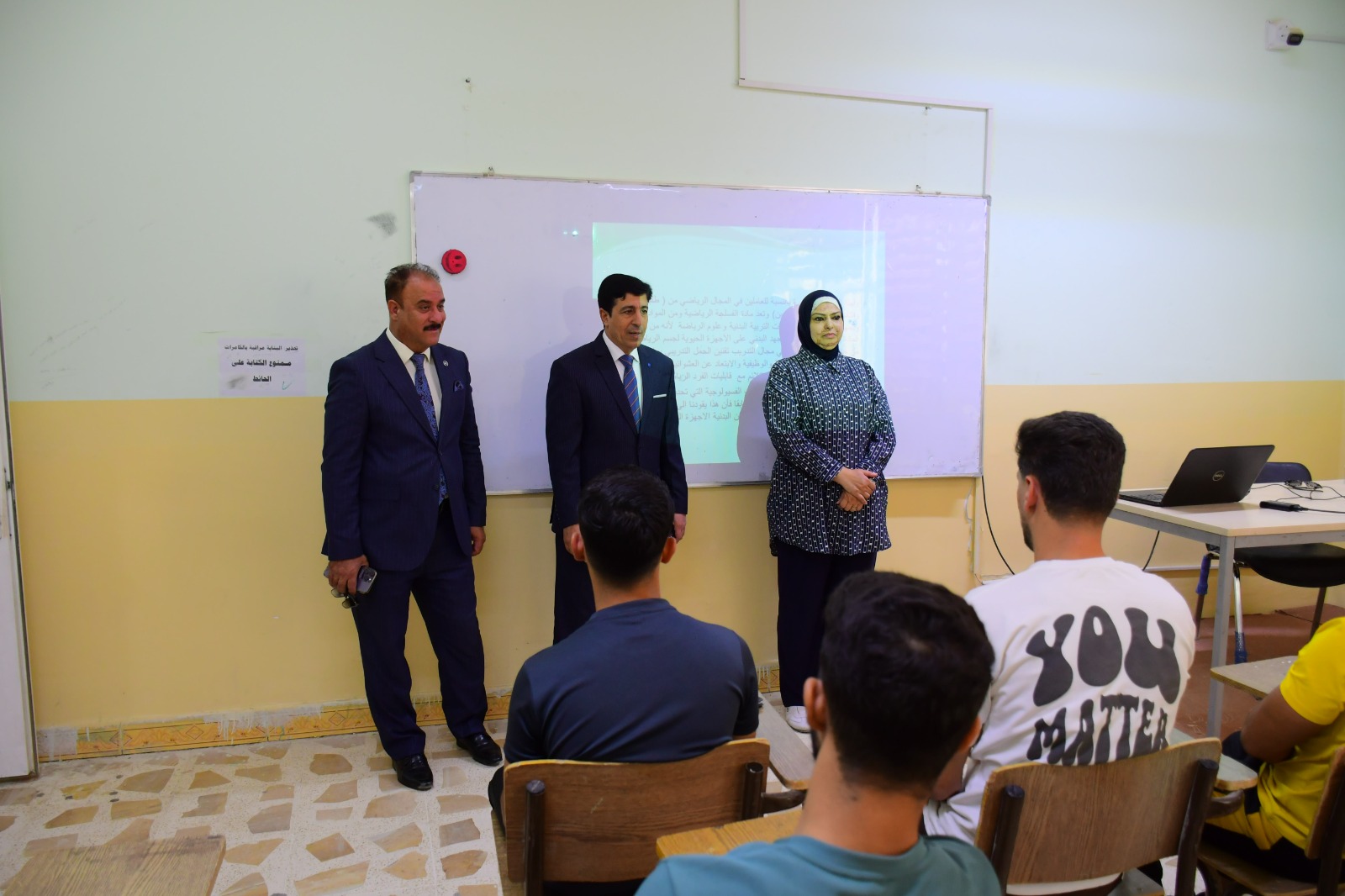 تفقد السيد عميد كلية التربية البدنية وعلوم الرياضة في جامعة تكريت الأستاذ المساعد الدكتور عبدالله محمد طياوي وبرفقته السيد معاون العميد للشؤون العلمية الأستاذ الدكتور حميد احمد محمد سير العملية التعليمية في الكلية ، حيث تم تفقد القاعات الدراسية والالتقاء بالتدريسيين والطلبة ، وأكد السيد العميد المحترم خلال اللقاء بأبناءه الطلبة على ضرورة مضاعفة الجهود، وكذلك الإلتزام بالدوام والزي الرسمي من أجل الارتقاء بالعملية التعليمية وتحقيق أفضل النتائج العلمية والاكاديمية .