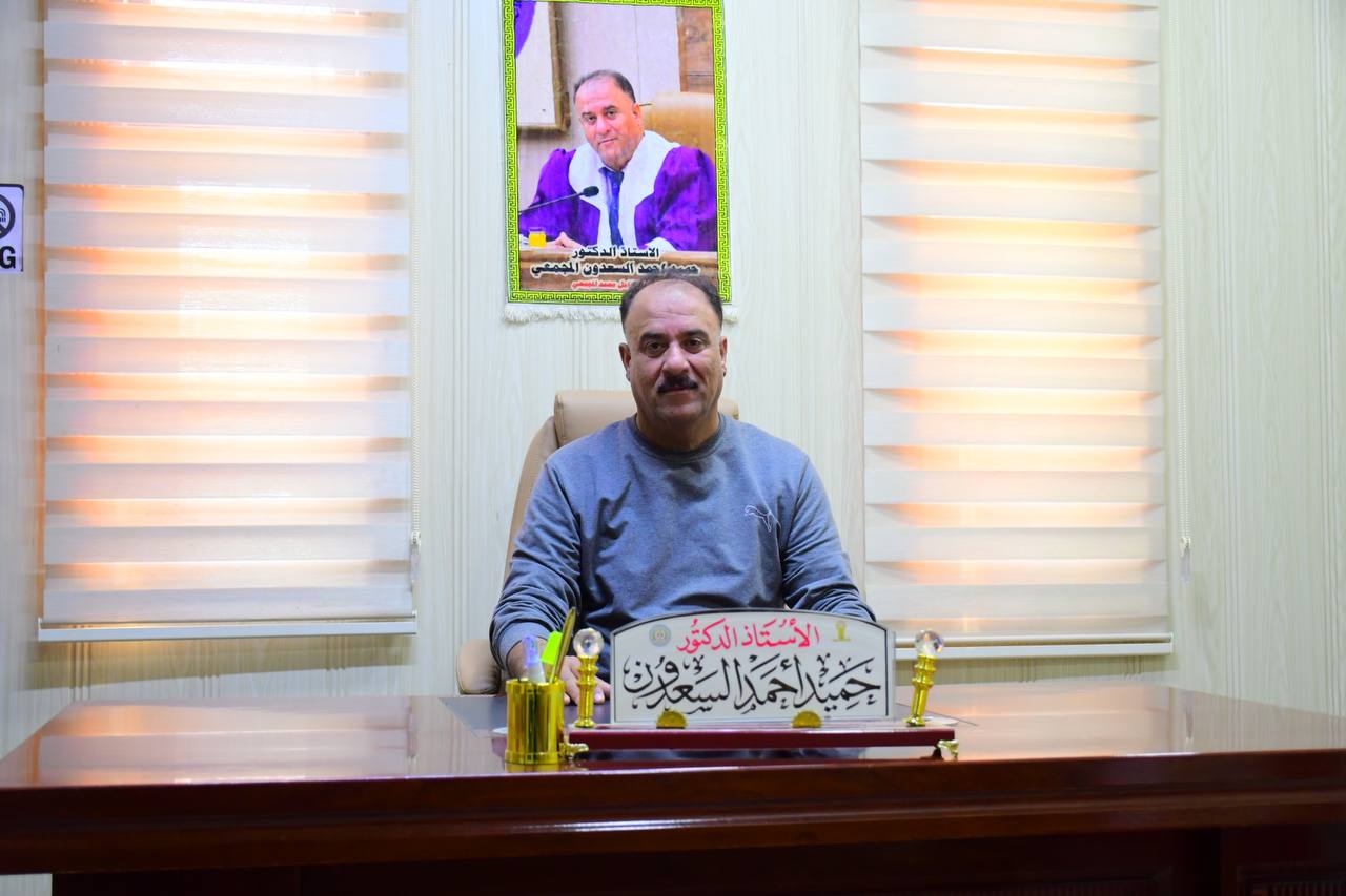 تتقدم عمادة كلية التربية البدنية وعلوم الرياضة متمثلة بالسيد عميد الكلية الأستاذ المساعد الدكتور عبدالله محمد طياوي والهيئة التدريسية ومنتسبيها كافة باحر التهاني والتبريكات الى رئيس فرع الالعاب الفردية الأستاذ الدكتور حميد احمد محمد بمناسبة تسنمه منصب معاون العميد للشؤون العلمية متمنين له التوفيق والسداد في إنجاز المهام الموكلة اليه سائلين المولى عز وجل له دوام التقدم والنجاح بمسيرته العلمية والوظيفية خدمة لجامعتنا المعطاء وكليتنا الحبيبة .