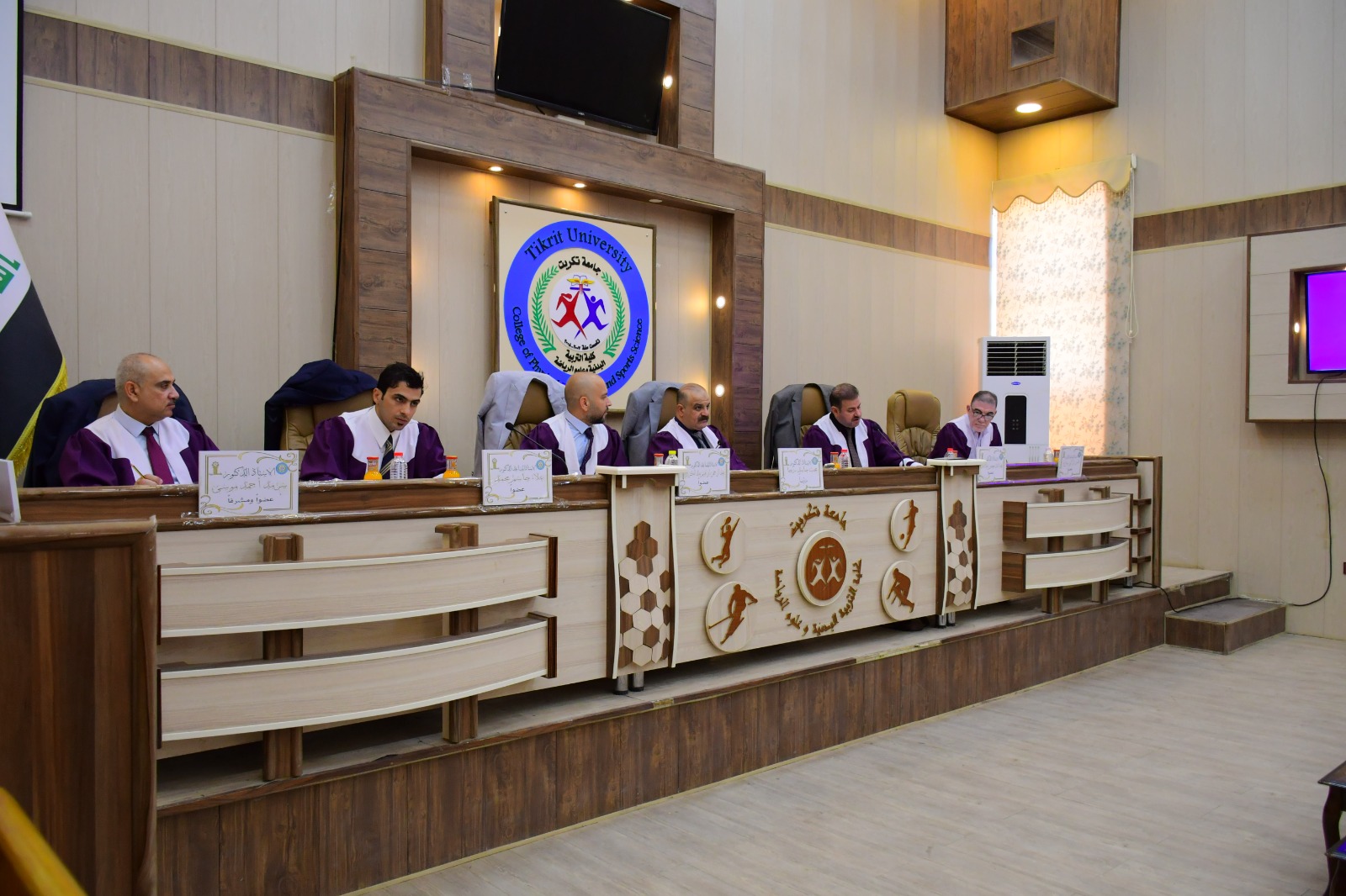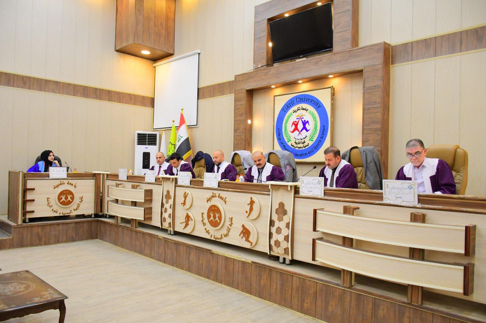نوقشت في كلية التربية البدنية وعلوم الرياضة - جامعة تكريت اطروحة طالبة الدكتوراه ( ميساء خالد احمد ) الموسومة ( تأثير اسلوبي التدريب الذهني وفق تصنيف لابان في تنمية بعض القدرات الادراكية الحس حركية وتعلم عدد من المهارات الاساسية بكرة القدم الصالات ) وذلك يوم الثلاثاء الموافق 2024/9/17 و على قاعة المناقشات الكبرى في كلية التربية البدنية وعلوم الرياضة - جامعة تكريت ، حيث تألفت لجنة المناقشة من السادة المدرجة اسمائهم ادناه :