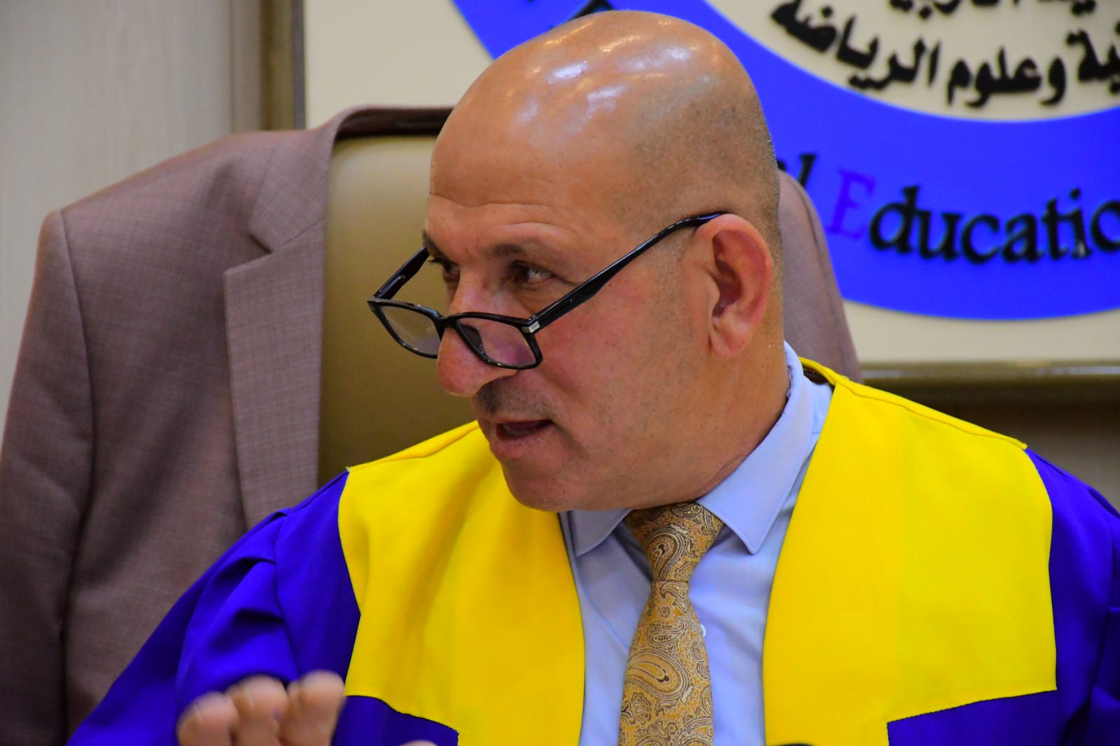 ناقشت كلية التربية البدنية وعلوم الرياضة في جامعة تكريت اطروحة طالب الدكتوراه ( علي صباح ابراهيم ) الموسومة ( تأثير استخدام التداخل التصوري(PETTLEP) في تطوير بعض القدرات البدنية والمهارية للاعبي الملاكمة ) وذلك يوم الاثنين الموافق 2024/5/27 و على قاعة المناقشات الكبرى في كلية التربية البدنية وعلوم الرياضة - جامعة تكريت ، وقد حضر المناقشة عميد الكلية الاستاذ المساعد الدكتور عبدالله محمد طياوي ، وقد أثنى على الجهود المبذولة من قبل الاساتذة المناقشين مثمناً دقة ملاحظاتهم وصوابها والمستوى العلمي الكبير لهذه المناقشات ودورها في تحقيق الرصانة العلمية والمستوى العلمي الذي تطمح وتسعى إليه كليتنا وبما يليق بجامعة تكريت كمنارة وصرح علمي كبير. وتألفت لجنة المناقشة من السادة المدرجة اسمائهم ادناه :