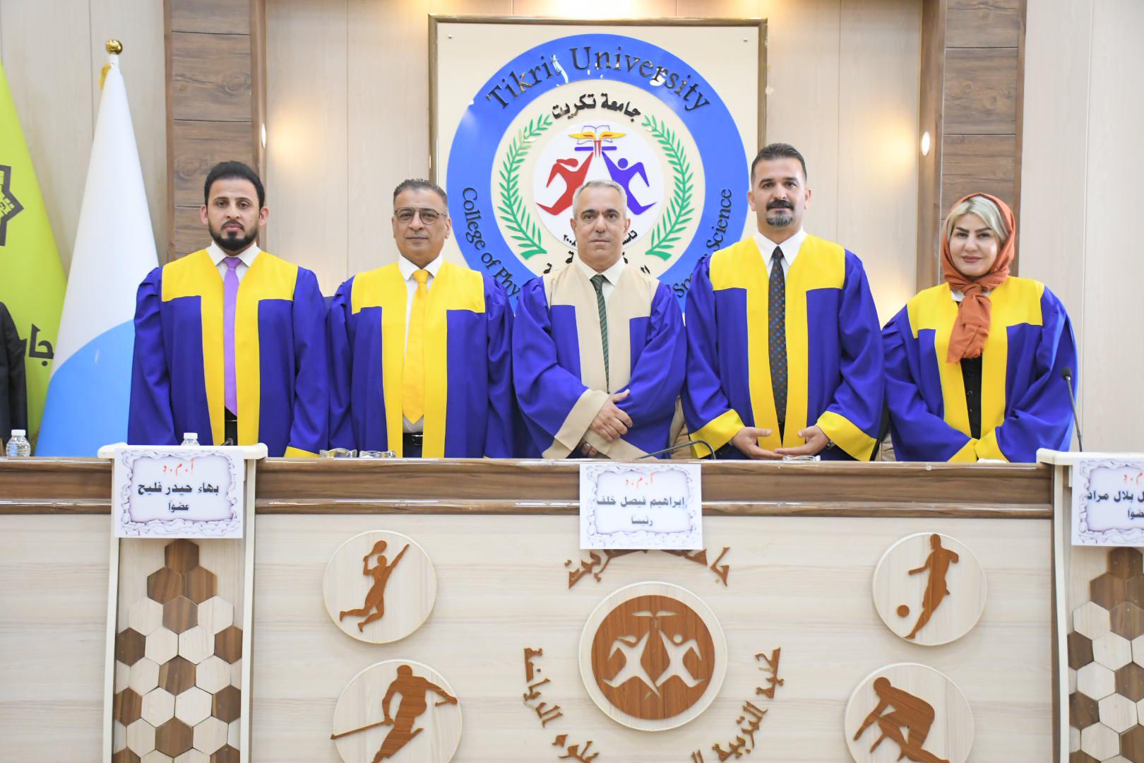 نوقشت في كلية التربية البدنية وعلوم الرياضة بجامعة تكريت، رسالة طالب الماجستير ( عامر نجم عبدالله ) الموسومة ( دور القدرات التكنولوجية في تعزيز الديمومة التنظيمية لمنتسبي اقسام النشاطات الطلابية لعدد من الجامعات العراقية ) وذلك في تمام الساعة التاسعة صباحاً من يوم الاثنين الموافق 2025/4/28 و على قاعة المناقشات الكبرى في كلية التربية البدنية وعلوم الرياضة بجامعة تكريت ، حيث تألفت لجنة المناقشة من السادة المدرجة اسمائهم ادناه :