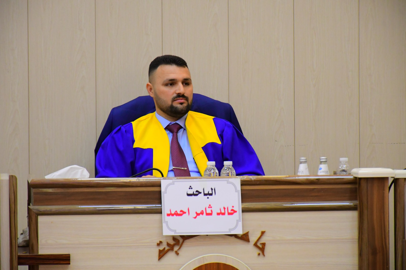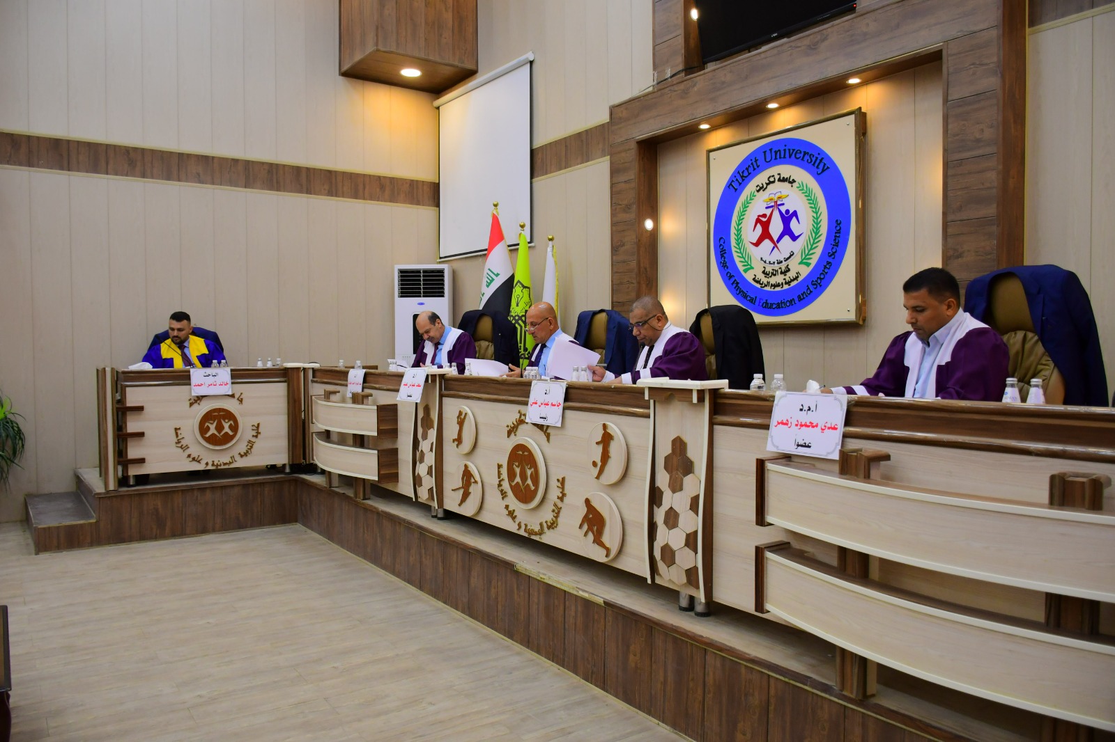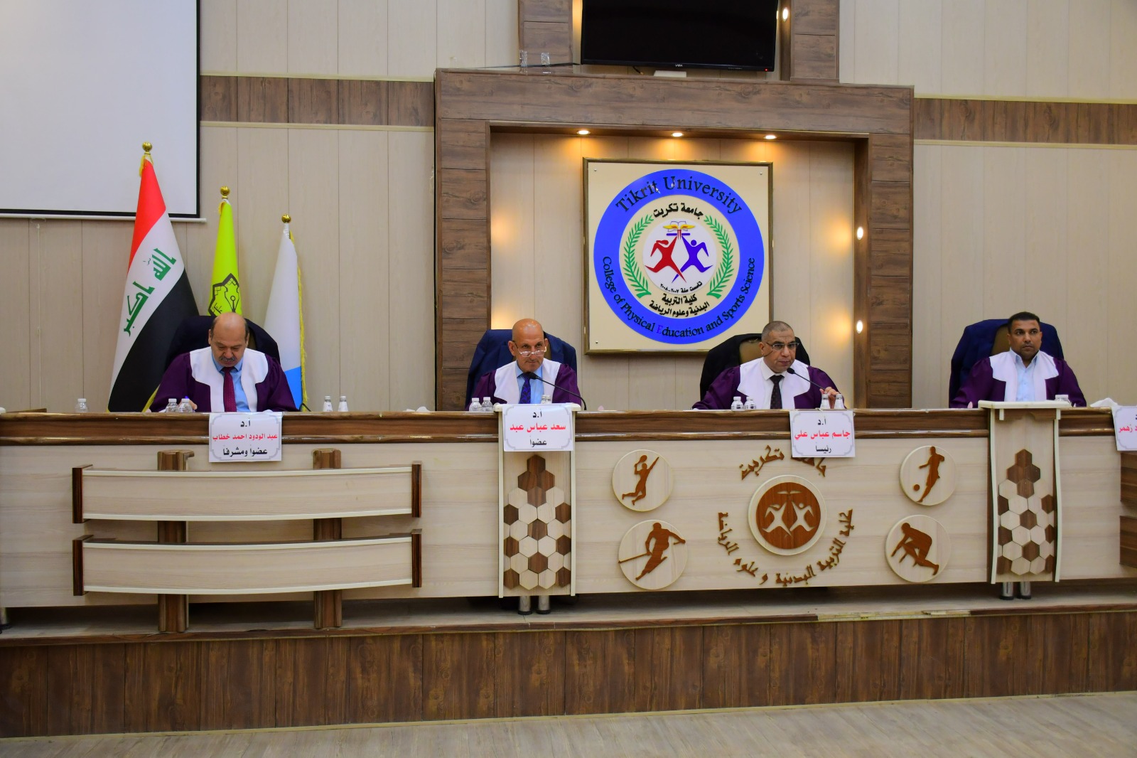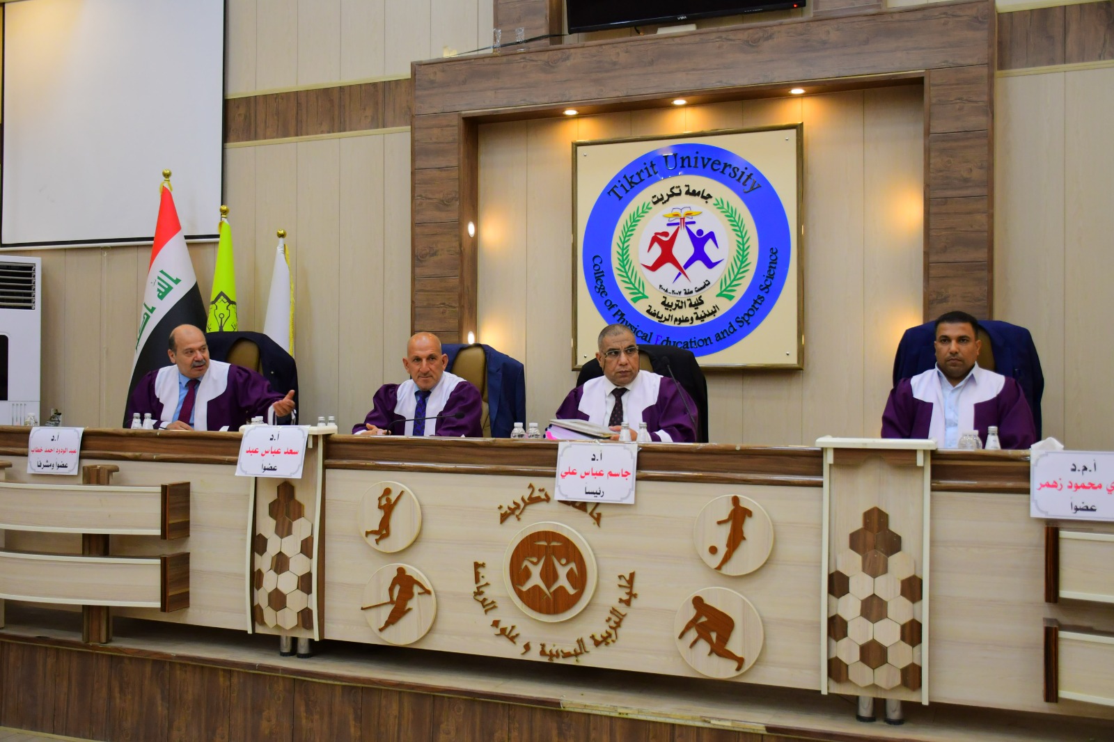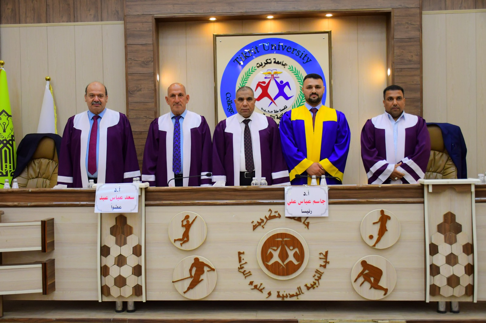 ناقشت كلية التربية البدنية وعلوم الرياضة في جامعة تكريت رسالة طالب الماجستير ( خالد ثامر احمد ) الموسومة ( العوامل النفس - اجتماعية وعلاقتها بالتفوق الرياضي وبعض المهارات الهجومية المركبة بكرة السلة لدى اللاعبين المتقدمين ) وذلك يوم الاحد الموافق 2024/5/5 و على قاعة المناقشات الكبرى في كلية التربية البدنية وعلوم الرياضة - جامعة تكريت ، وقد حضر المناقشة عميد الكلية الاستاذ المساعد الدكتور عبدالله محمد طياوي ، و أثنى على الجهود المبذولة من قبل الاساتذة المناقشين مثمناً دقة ملاحظاتهم وصوابها والمستوى العلمي الكبير لهذه المناقشات ودورها في تحقيق الرصانة العلمية والمستوى العلمي الذي تطمح وتسعى إليه كليتنا وبما يليق بجامعة تكريت كمنارة وصرح علمي كبير. وتألفت لجنة المناقشة من السادة المدرجة اسمائهم ادناه :