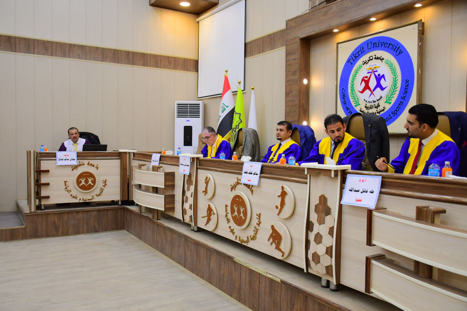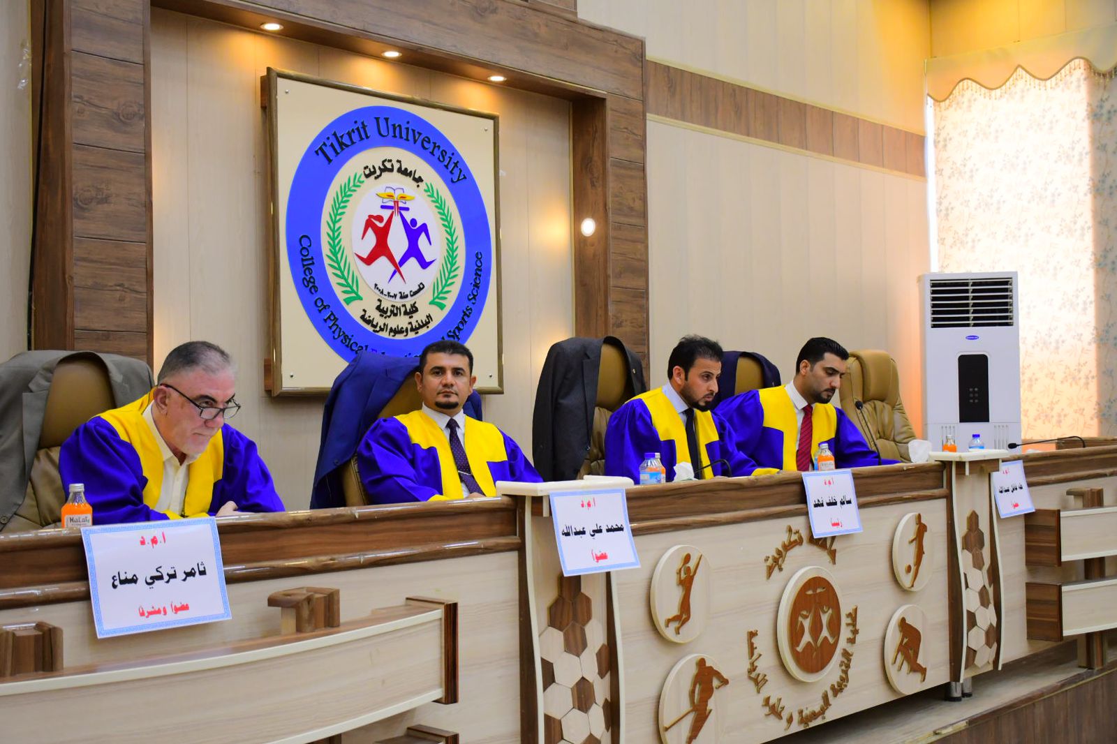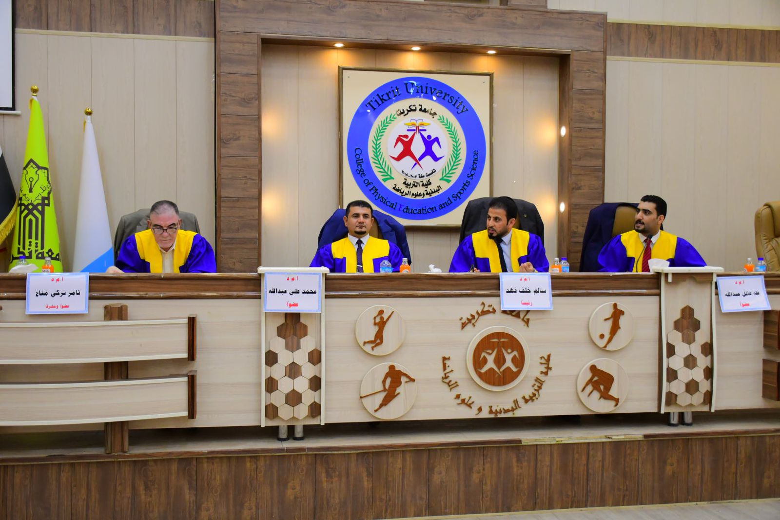 نوقشت في كلية التربية البدنية وعلوم الرياضة - جامعة تكريت رسالة طالب الماجستير ( نوفان سالم صالح ) الموسومة ( الهندسة البشرية ودورها في الحد من الضغوط الوظيفية لموظفي منتديات الشباب والرياضة في محافظة صلاح الدين ) وذلك يوم الاربعاء الموافق 2024/6/26 و على قاعة المناقشات الكبرى في كلية التربية البدنية وعلوم الرياضة - جامعة تكريت ، وقد حضر المناقشة عميد الكلية الاستاذ المساعد الدكتور عبدالله محمد طياوي ، و أثنى على الجهود المبذولة من قبل الاساتذة المناقشين مثمناً دقة ملاحظاتهم وصوابها والمستوى العلمي الكبير لهذه المناقشات ودورها في تحقيق الرصانة العلمية والمستوى العلمي الذي تطمح وتسعى إليه كليتنا وبما يليق بجامعة تكريت كمنارة وصرح علمي كبير. حيث تألفت لجنة المناقشة من السادة المدرجة اسمائهم ادناه :