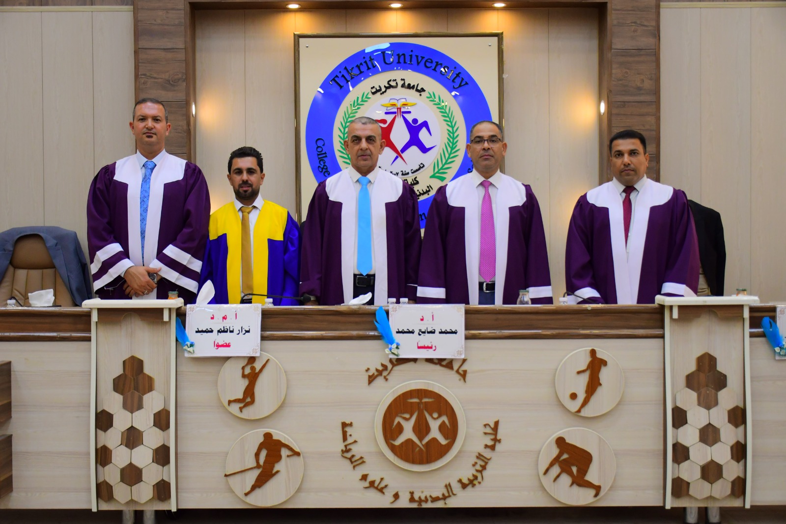 نوقشت في كلية التربية البدنية وعلوم الرياضة - جامعة تكريت رسالة طالب الماجستير ( عبدالرحمن محمد كردي ) الموسومة ( تأثير الأشرطة والحبال المطاطية المصاحبة للتمرينات البدنية والمهارية في بعض مكونات اللياقة البدنية والمهارات الأساسية للاعبي كرة اليد الناشئين ) وذلك يوم الاربعاء الموافق 2024/9/25 و على قاعة المناقشات الكبرى في كلية التربية البدنية وعلوم الرياضة - جامعة تكريت ، حيث تألفت لجنة المناقشة من السادة المدرجة اسمائهم ادناه :