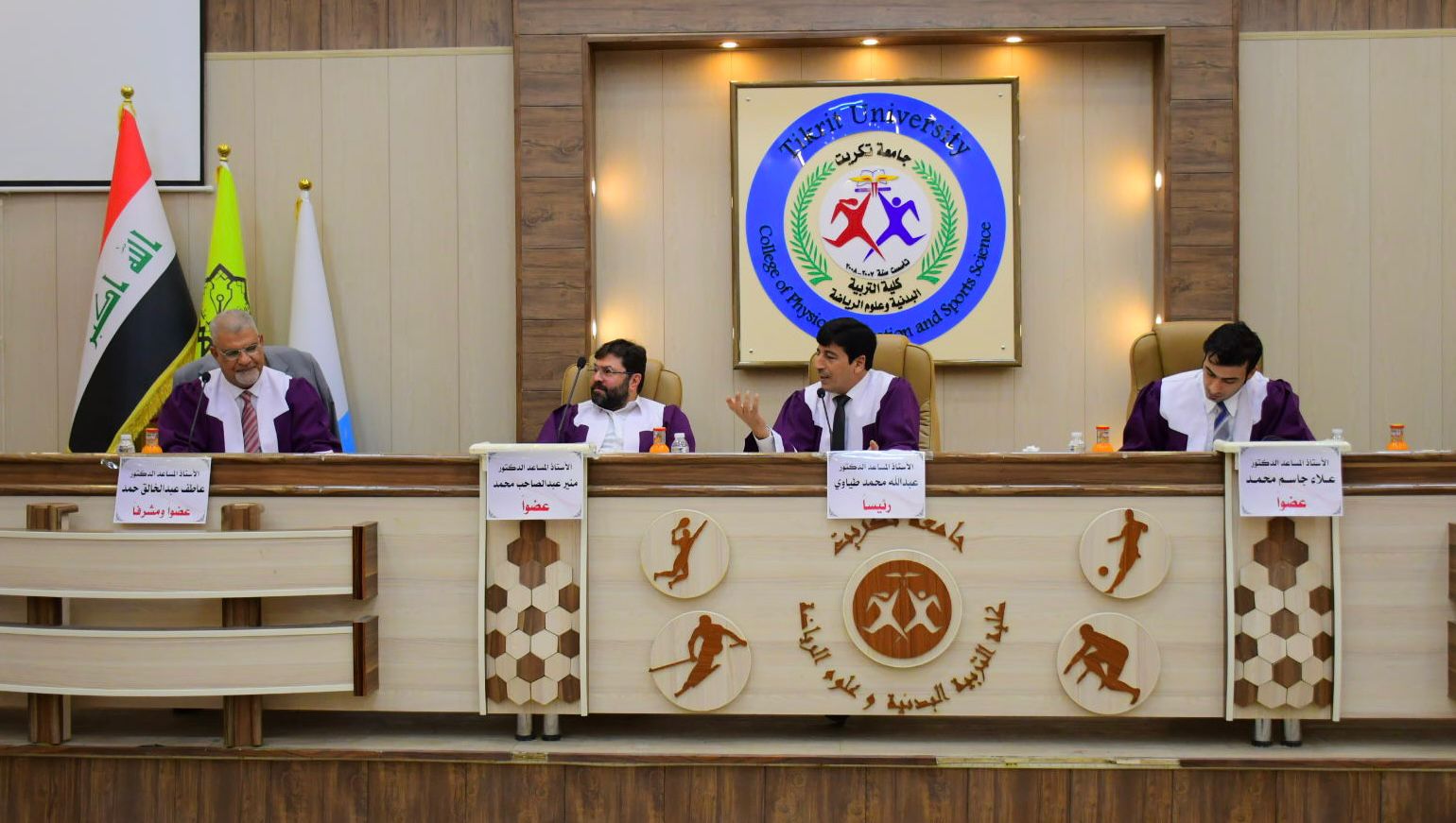 نوقشت في كلية التربية البدنية وعلوم الرياضة - جامعة تكريت رسالة طالب الماجستير ( خالد نواف فياض ) الموسومة ( تأثير تمرينات خاصة وفق النظام الفوسفاجيني في بعض المتغيرات البدنية والمهارية والقدرة اللاهوائية القصوى للاعبي كرة القدم الشباب ) وذلك يوم الاربعاء الموافق 2024/8/21 و على قاعة المناقشات الكبرى في كلية التربية البدنية وعلوم الرياضة - جامعة تكريت ، حيث تألفت لجنة المناقشة من السادة المدرجة اسمائهم ادناه :